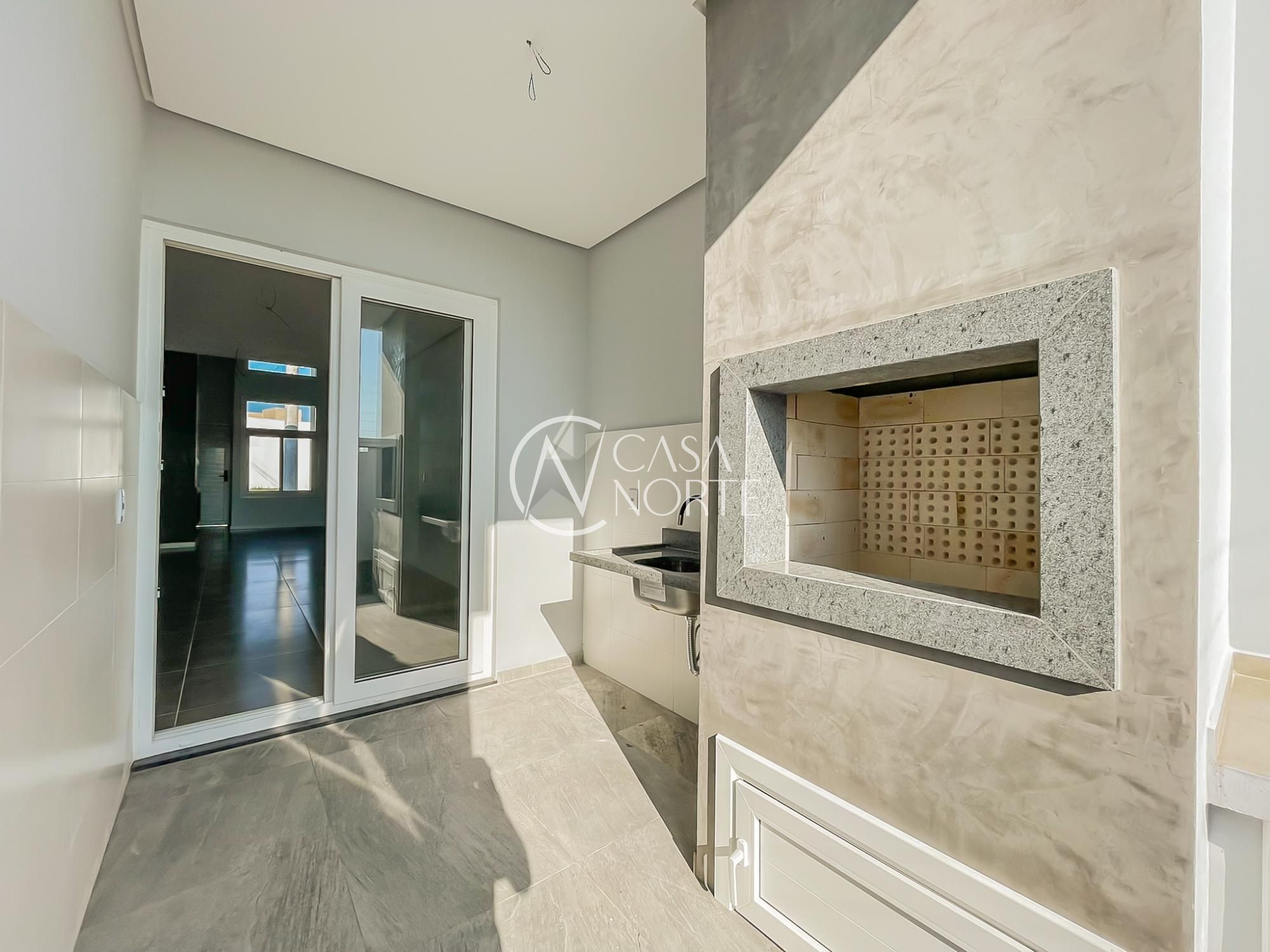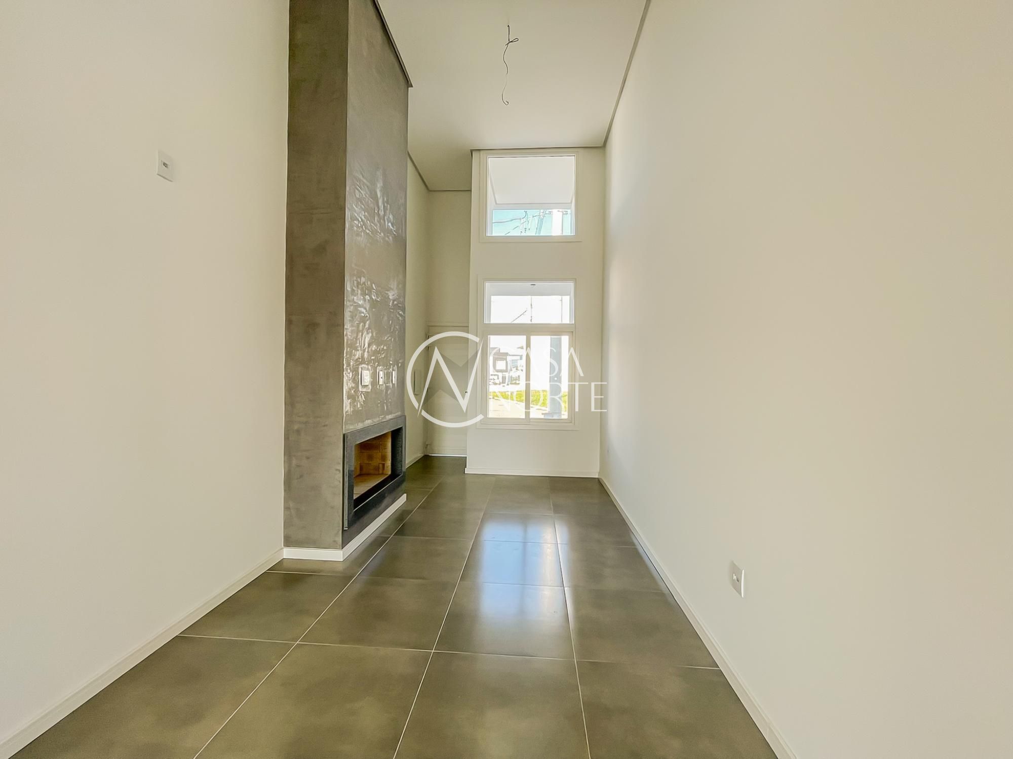 No condomínio Jardins do Condado, com 3 dormitórios, living amplo, lareira, com uma suíte, banheiro social, lavanderia, churrasqueira, duas vagas.
