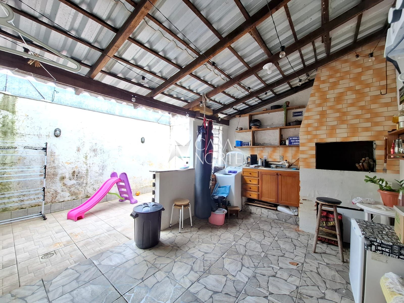 Casa para locação, com 3 dormitórios, sala, cozinha e banheiro social. Na casa fica um ar condicionado 9000 btus na sala, armário no banheiro e armário na lavanderia. A casa é toda gradeada, pátio fechado na frente e nos fundos, possui churrasqueira, área coberta na parte de trás e garagem coberta na frente. A CASA FICA VAZIA, NÃO FICA NADA DE MOBÍLIA.