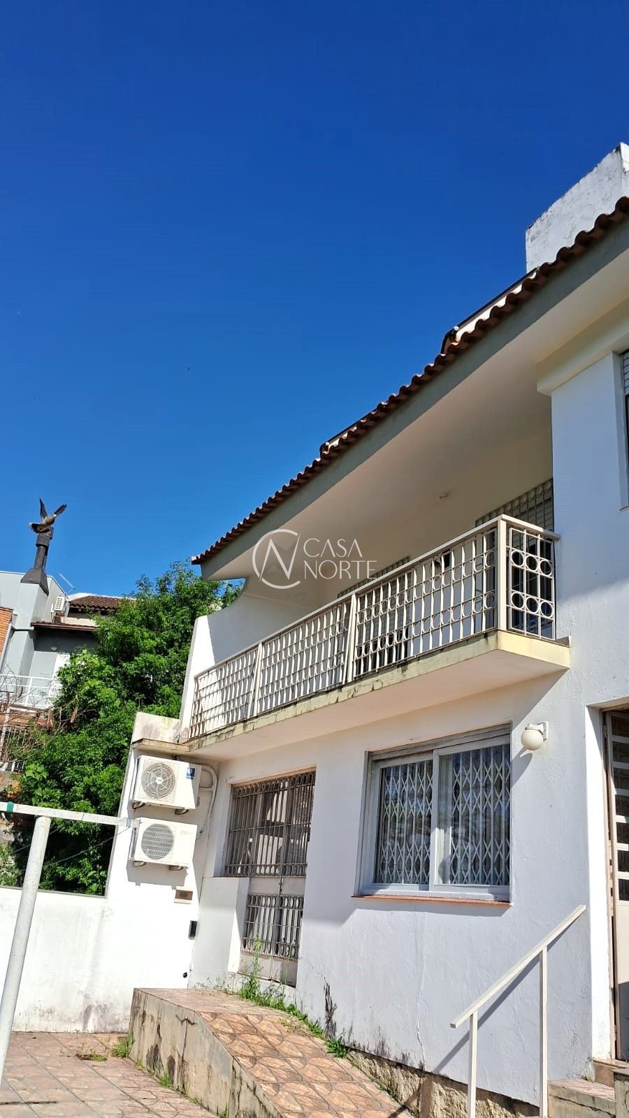 Muito boa e ampla casa de 3 dormitórios construída em dois pavimentos composta da seguinte forma: Ao nível da rua suíte de casal, dois dormitórios de solteiro, banheiro social, copa cozinha e espaçosa sala de estar com lareira e sacada com vista panorâmica para o Guaíba. Ao nível abaixo do nível da rua, dependência completa de empregada, escritório (opção 4º dormitório), lavanderia, garagem fechada para dois carros e outra sala de estar desocupada. Ao fundo pátio muito grande com duas construções e bastante arborizado. Ótima localização, ficando na parte alta do bairro Tristeza, em rua tradicional com transporte próximo.