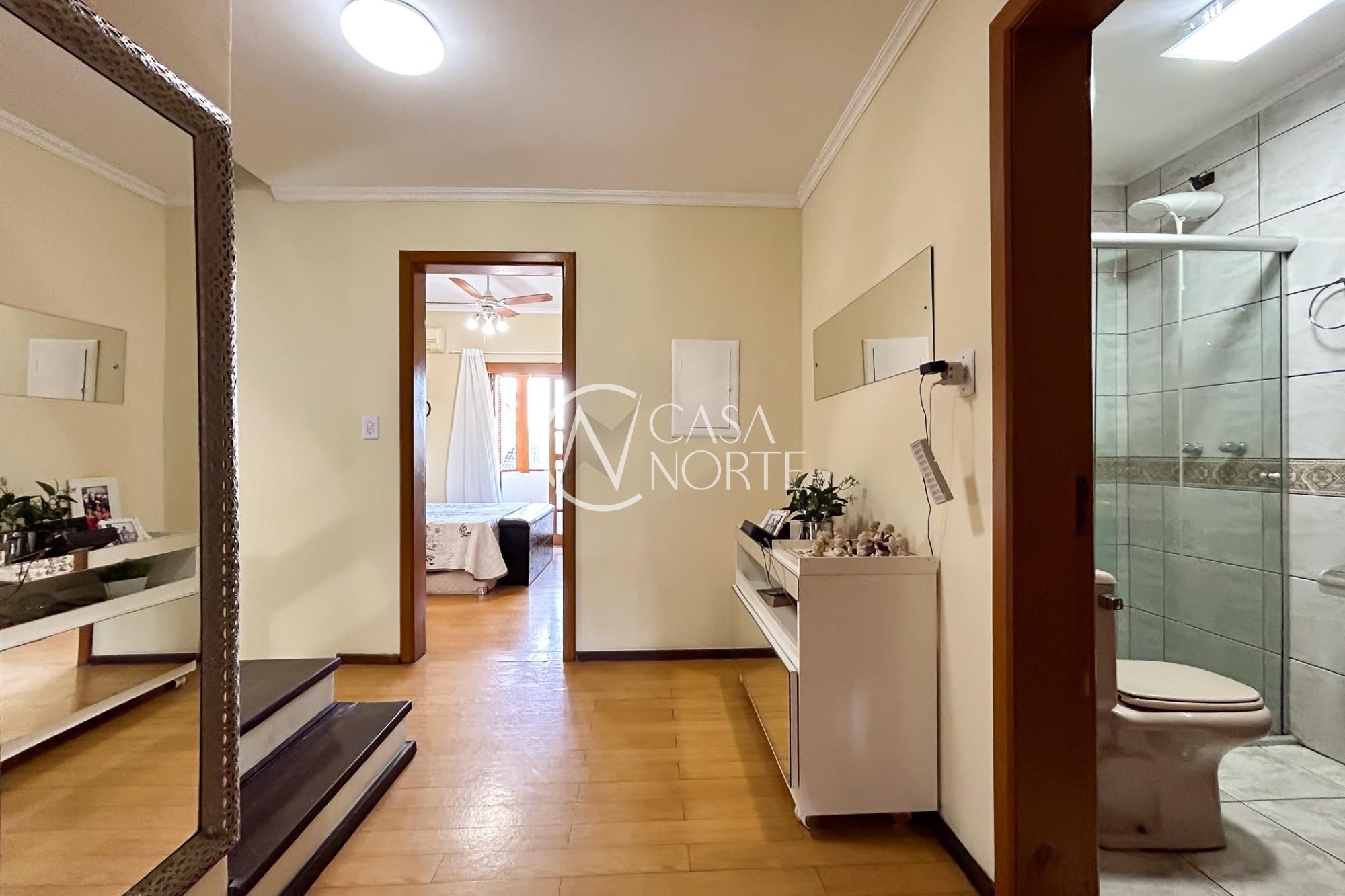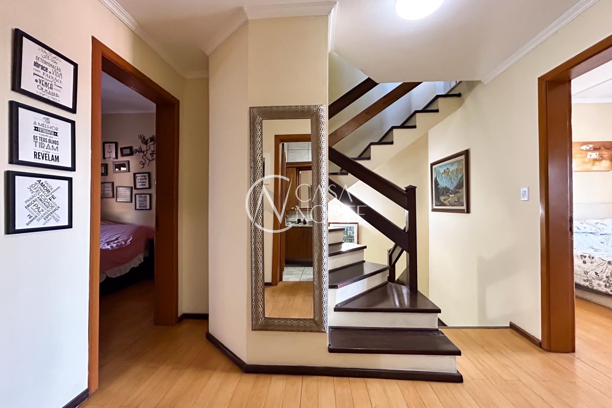No segundo andar estão os dormitórios, todos bem iluminados e ventilados, além de um banheiro social que atende aos demais quartos.