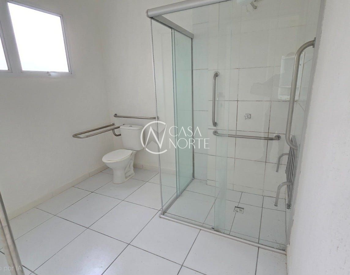 Apartamento térreo com 1 dormitório, living, cozinha, área de serviço e banheiro amplo, adaptado para PNE.