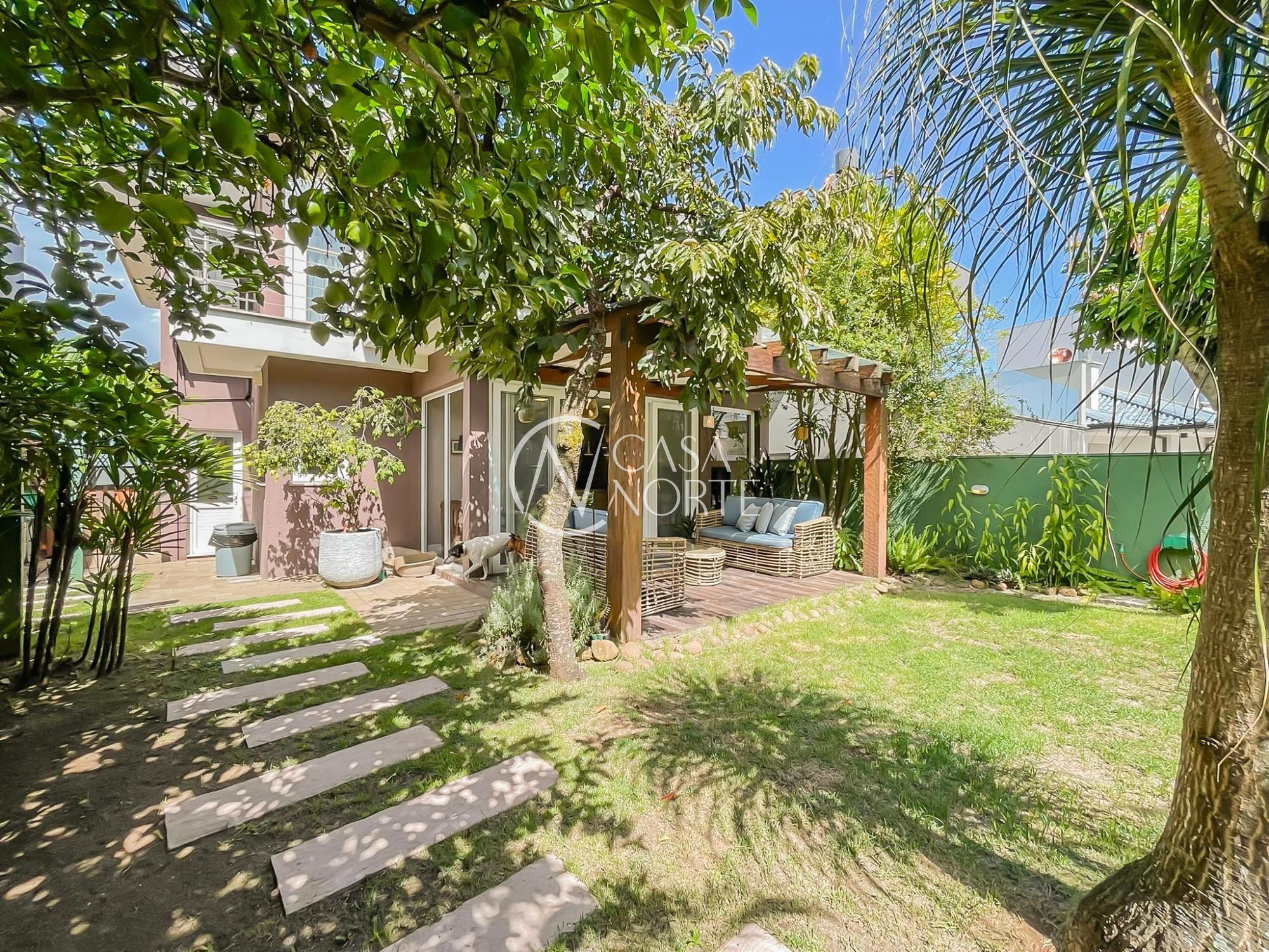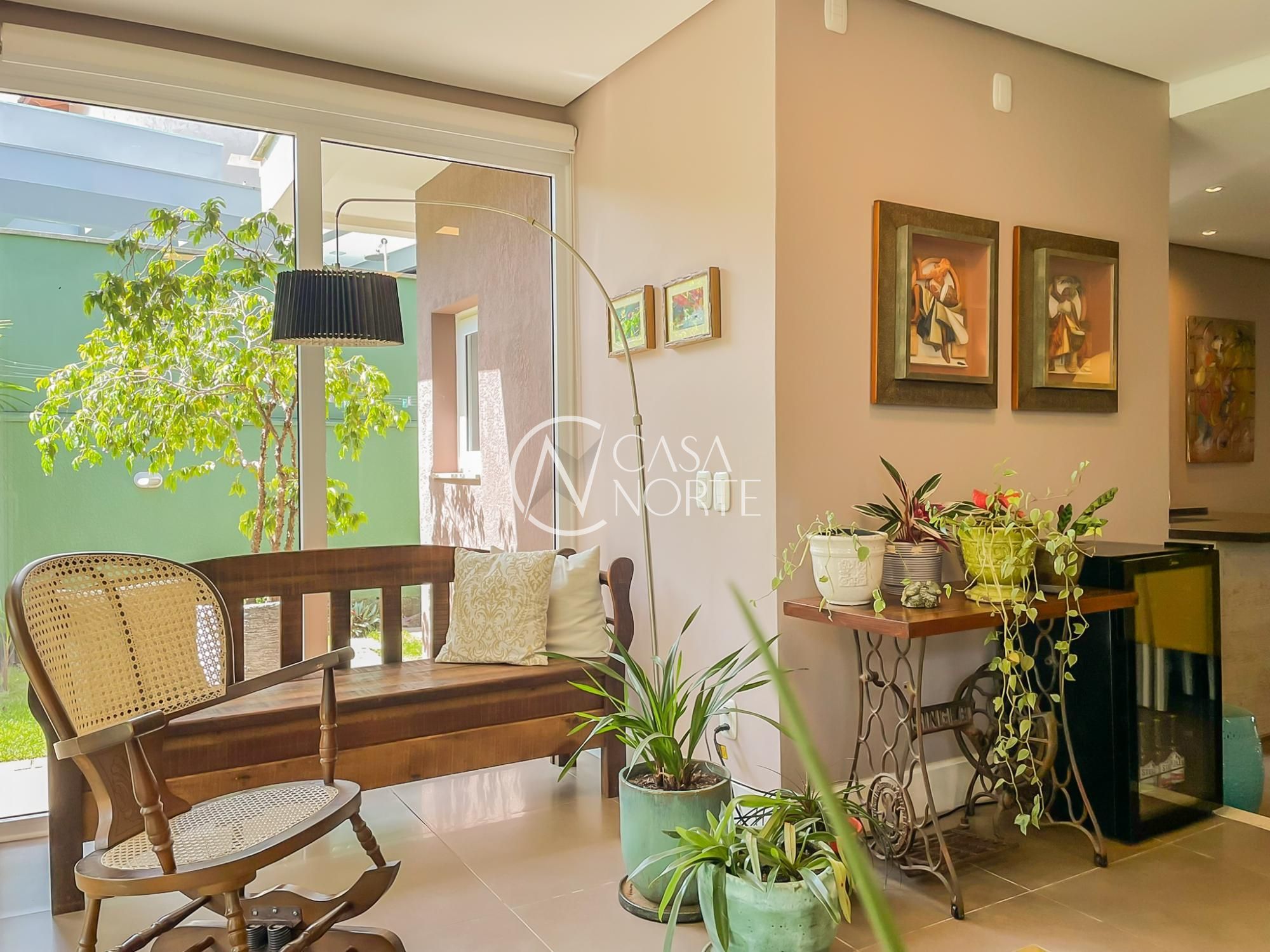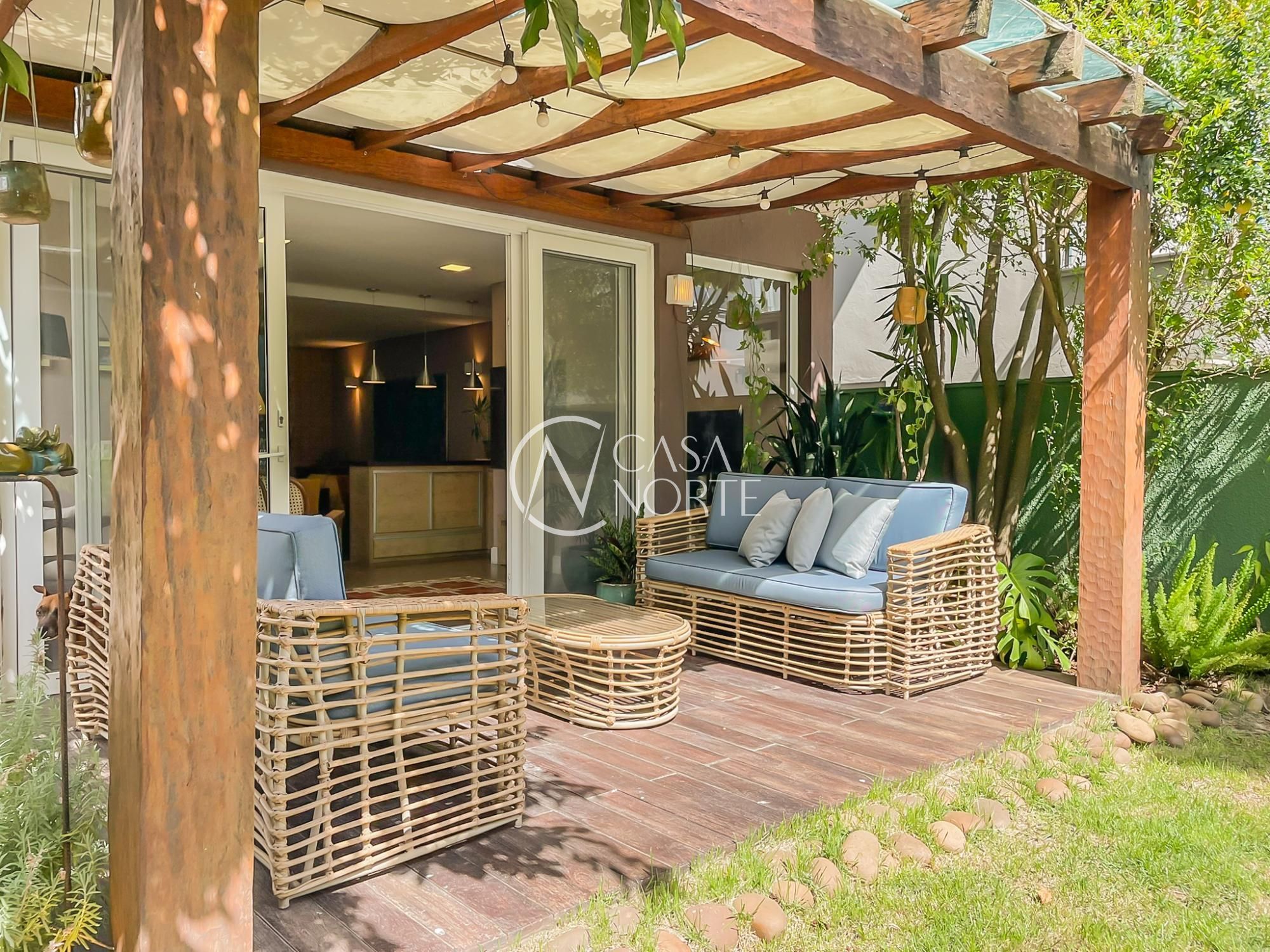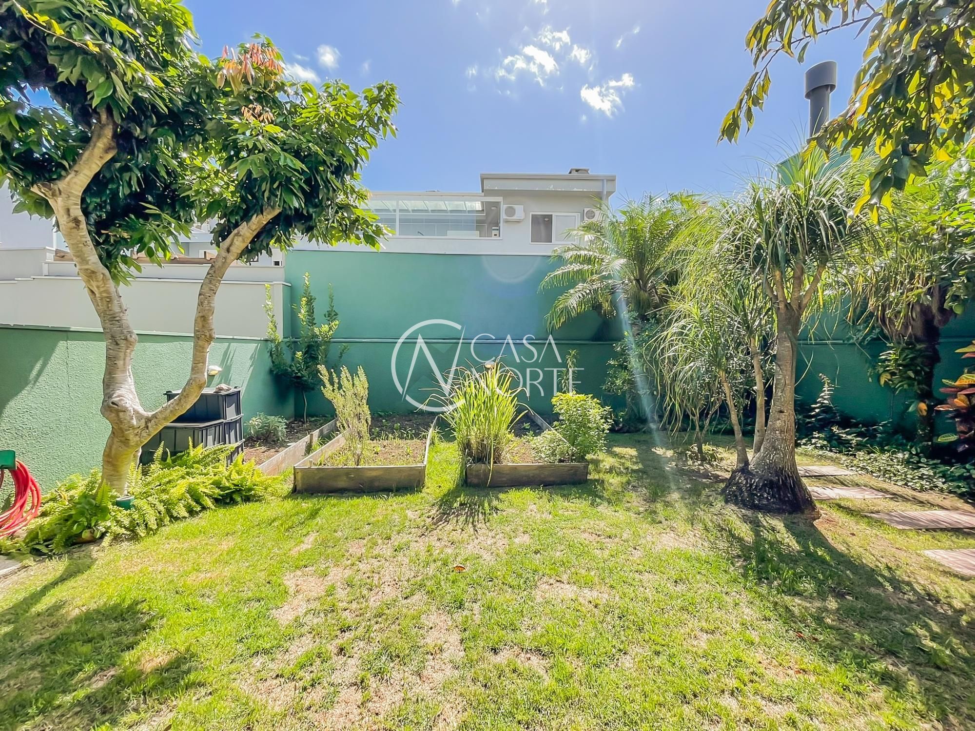 O imóvel conta com um amplo living integrado à sala de jantar e uma área gourmet super aconchegante, equipada com churrasqueira e fogão campeiro. O pátio arborizado, com árvores frutíferas e horta, entrega aquela vibe de refúgio natural dentro da cidade.