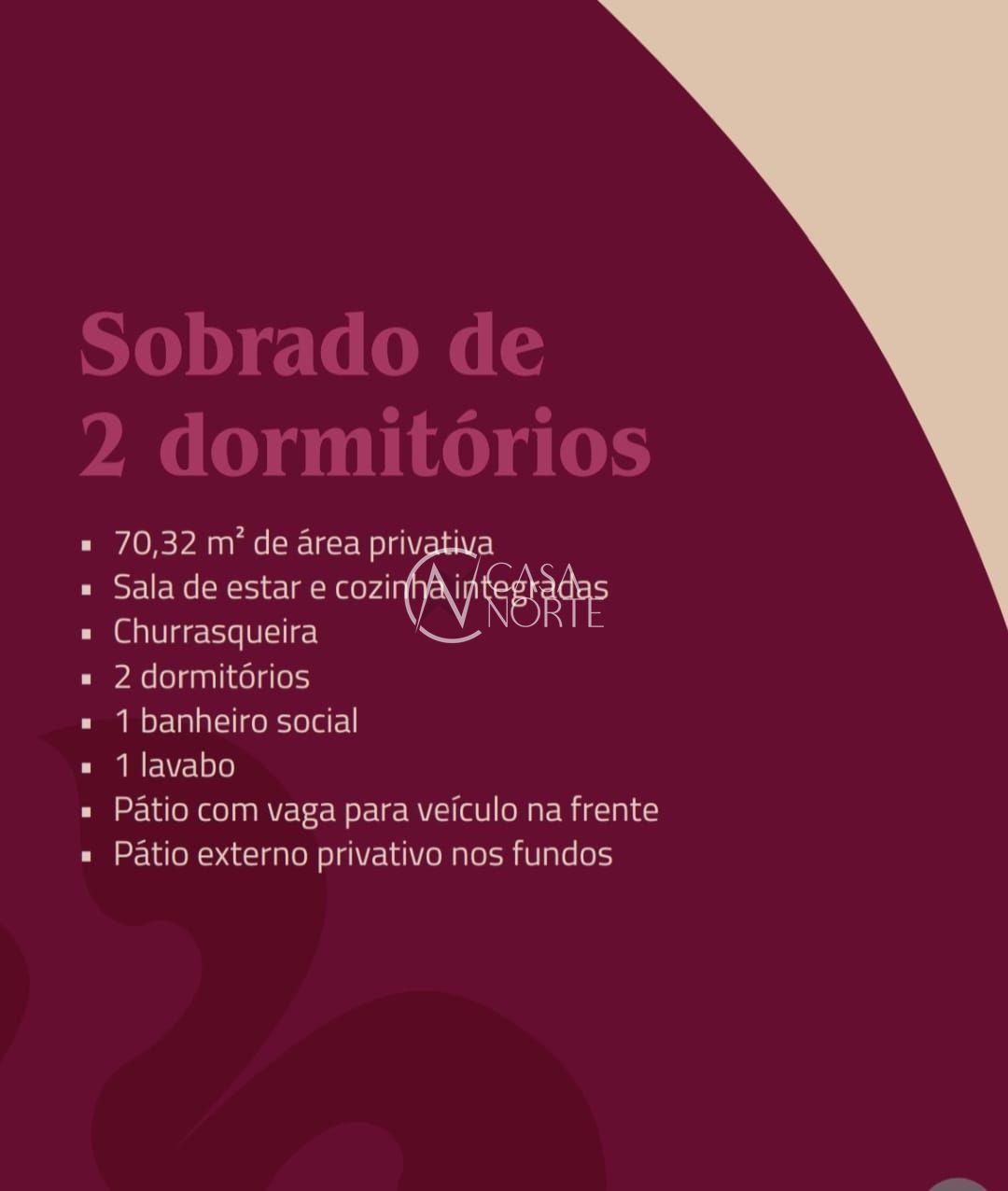 Sobrado de 02 dormitórios com 70,31m² de área privativa