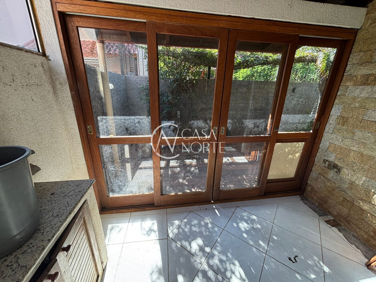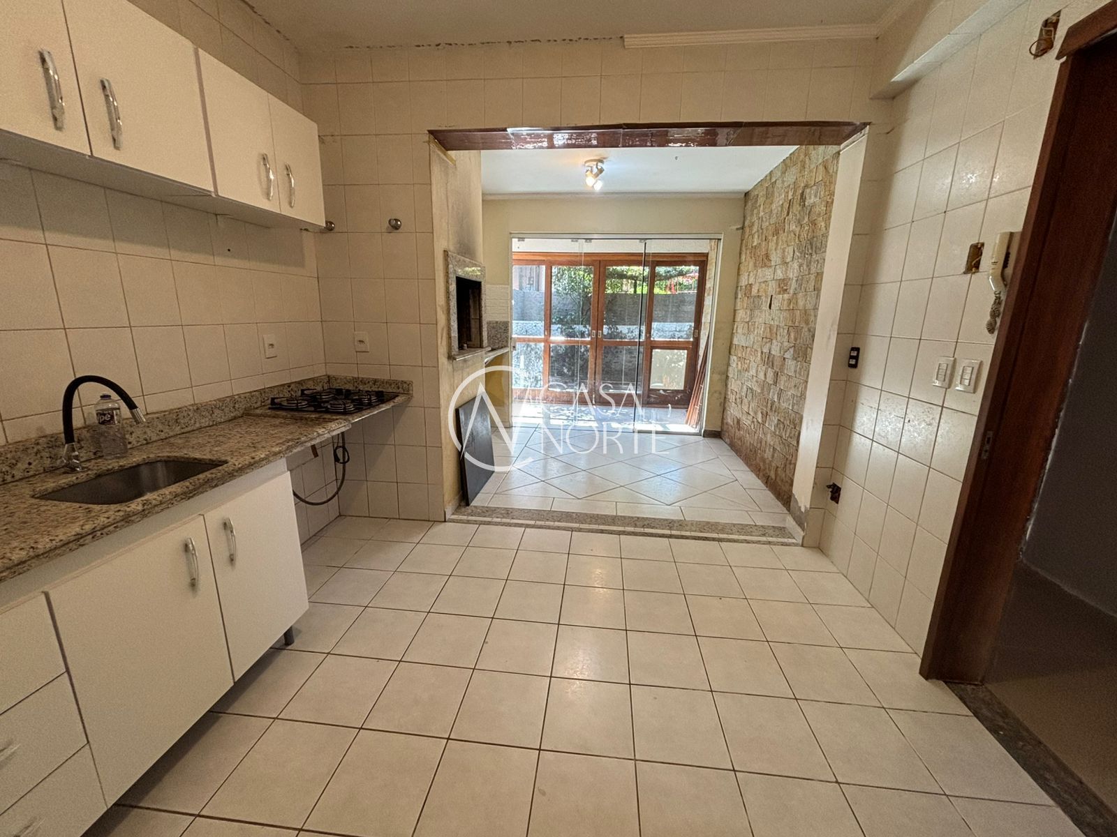 A cozinha é bem distribuída, com lavanderia separada, além de churrasqueira integrada para momentos de lazer. O imóvel dispõe ainda de um pequeno pátio, garantindo ventilação e espaço externo.
