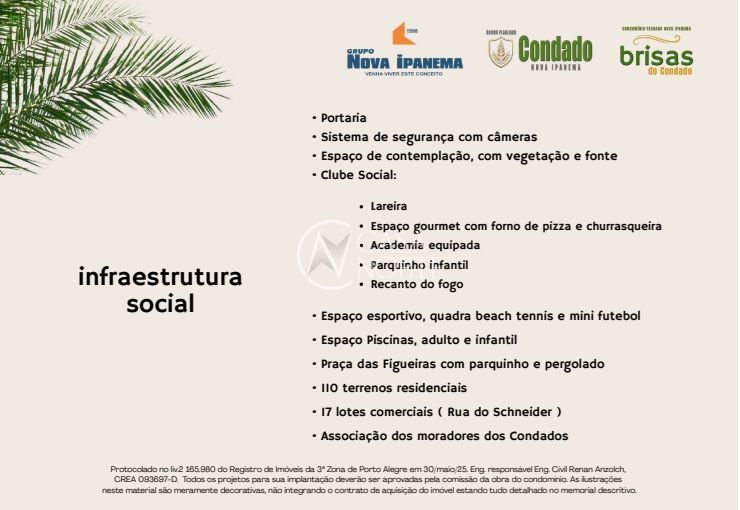 Portaria com controle de acesso ; Sistema de segurança com câmeras ;Estacionamento para visitantes ;Praça das Figueiras com pergolado e parquinho ; Academia equipada e espaços de bem-estar ;Clube social com lareira, churrasqueira e forno de pizza ;Recanto do Fogo para encontros ao ar livre ; Quadra de beach tennis e mini futebol ;Ambiente pensado para conforto e convivência ; 17 lotes comerciais voltados para a Rua do Schneider ; No centro do encontro das principais vias da Zona Sul