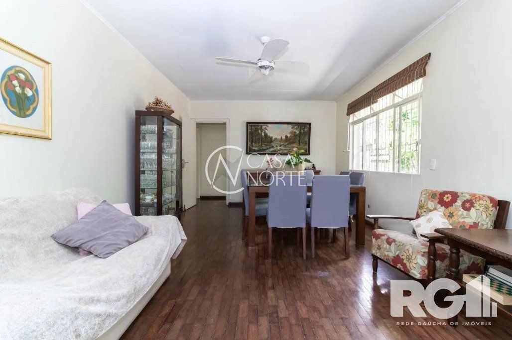 Casa térrea no bairro Vila Ipiranga, Porto Alegre, com 224,6 m² de área privativa. Possui 3 dormitórios (1 suíte), salas de estar e jantar integradas, cozinha espaçosa, pátio com churrasqueira, dependência de empregada e garagem para 3 carros.