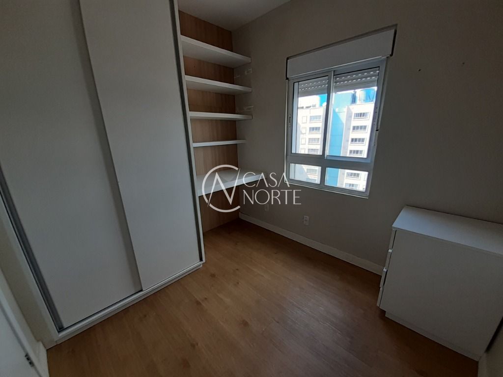 Apartamento no 13º andar - de FRENTE (48,77 m²) de área privativa - de 2 dormitórios. Mobiliado. Living, cozinha com churrasqueira integrada com área de serviço, banheiro social e os dormitórios. Prédio com portaria 24 horas , piscina, playground ,churrasqueiras