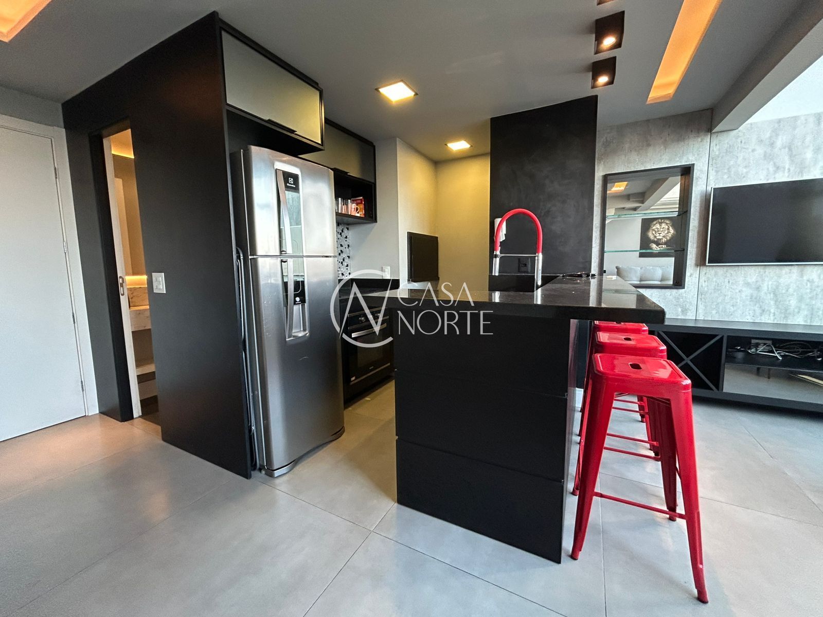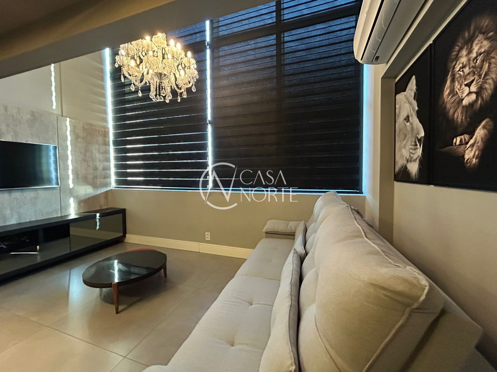 Ficam todos os móveis, suíte, cozinha e living decorados. Conta também com persianas elétricas e fechadura digital.