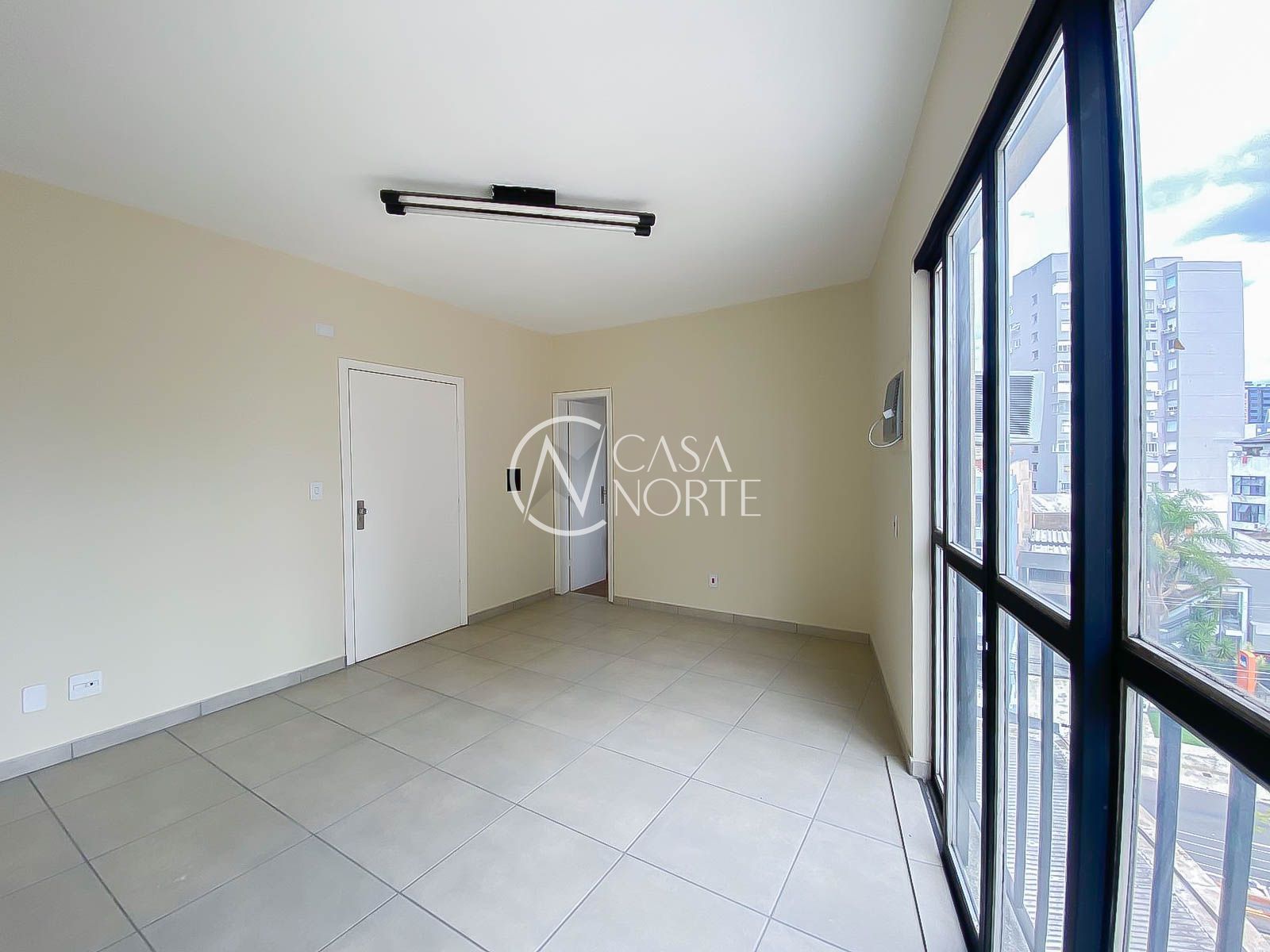 O imóvel possui ambiente amplo e bem distribuído, com piso em cerâmica clara, paredes brancas e excelente iluminação natural, proporcionada por grandes janelas com vista urbana. O espaço permite fácil adaptação para diferentes layouts corporativos, garantindo funcionalidade e conforto.