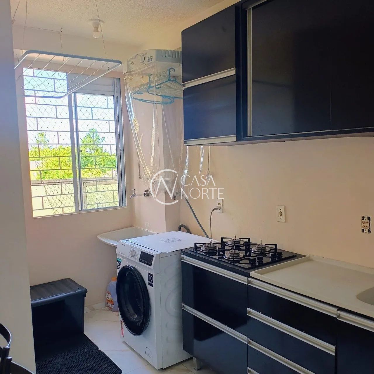 Apartamento térreo de 02 dormitórios, 1 banho social, Living 2 ambientes, cozinha e área de serviço. Arejado e iluminado. Pega sol direto na lavanderia, banheiro e quartos.
