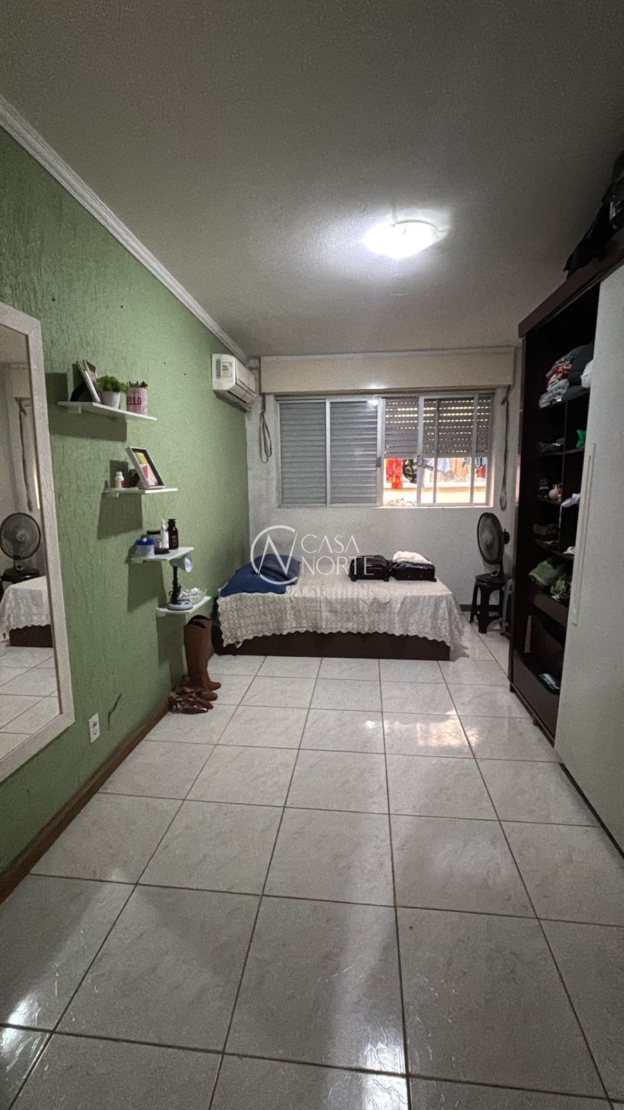 Apartamento com sala ampla, janelas grandes, bem iluminada e ventilada, piso cerâmico.