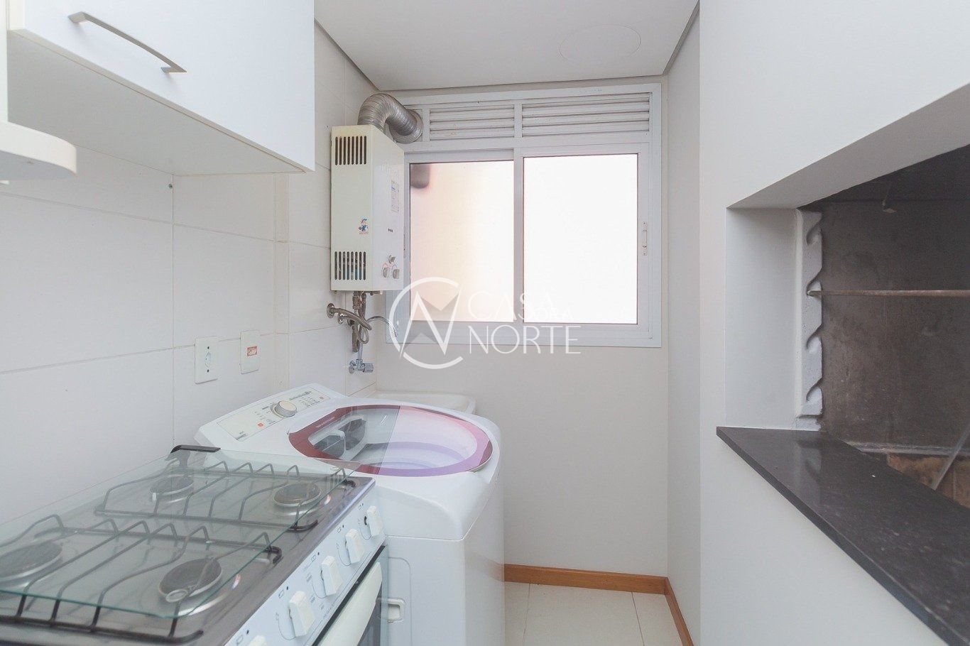 Cozinha planejada com churrasqueira e área de serviço. 1 quarto com privacidade e janela grande com sistema antirruído e persiana. Banheiro com chuveiro à gás e com ventilação natural.