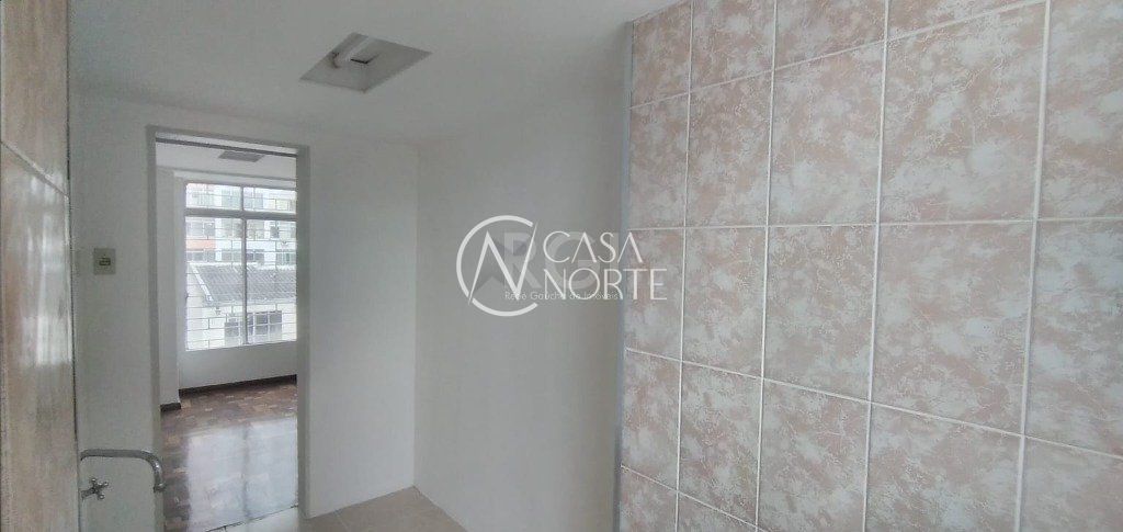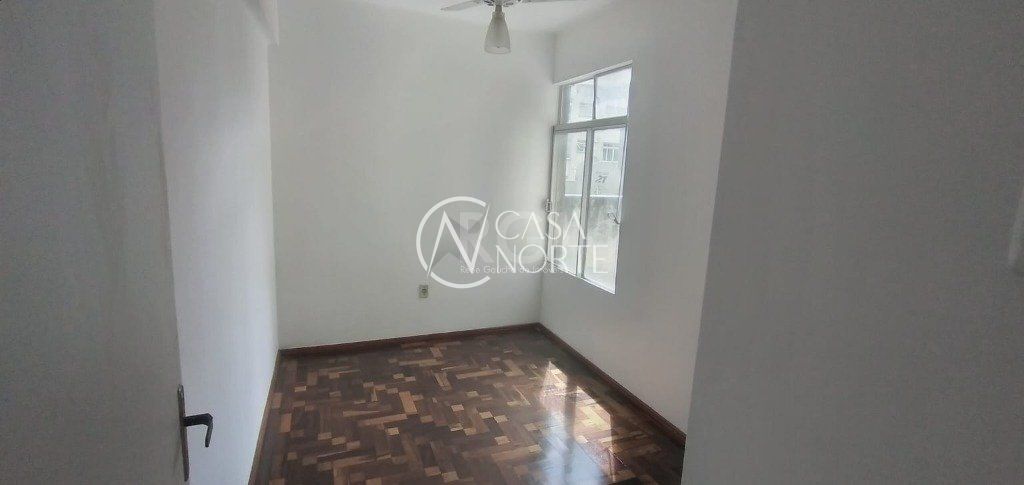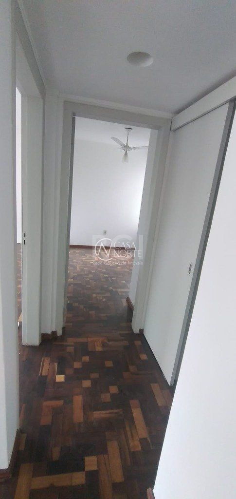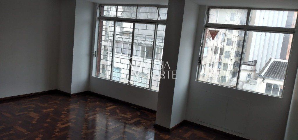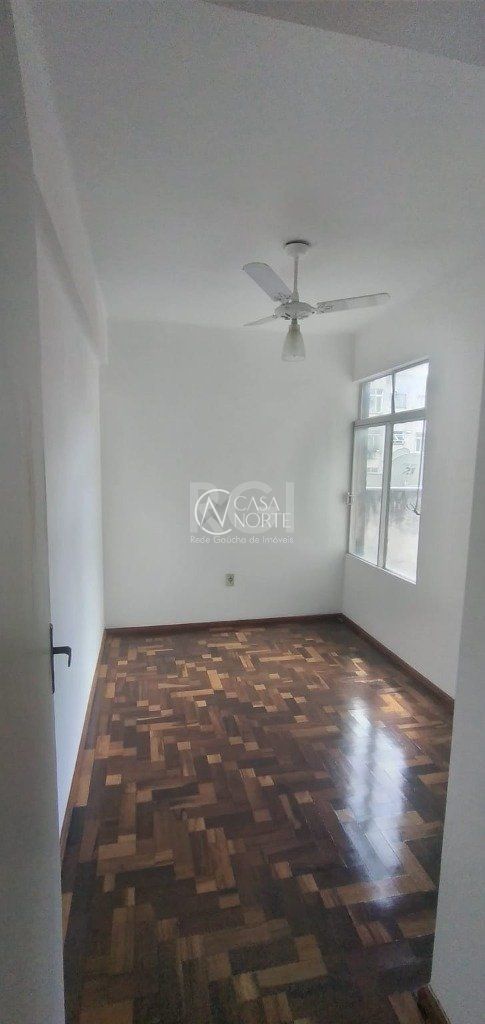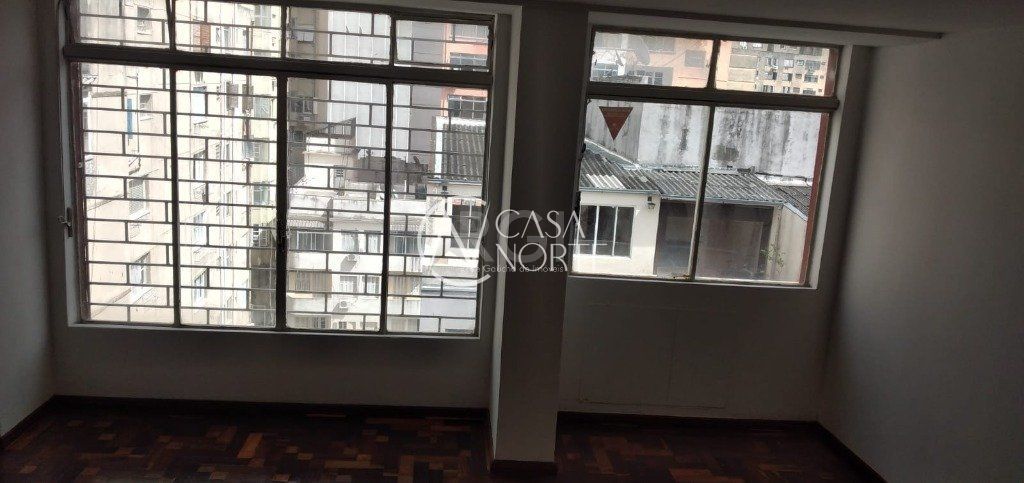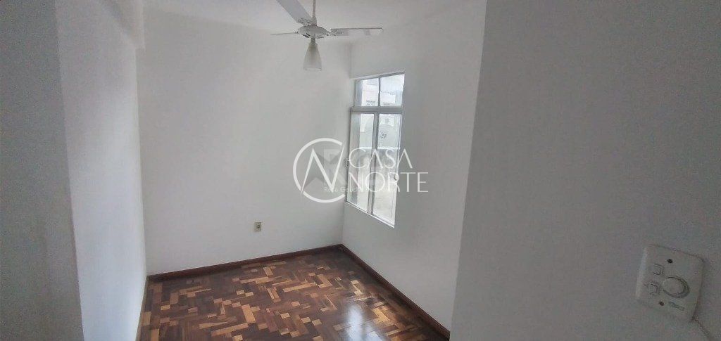 APARTAMENTO DE 2 DORMITÓRIOS, 60,82 m² em ótimo estado de conservação de FRENTE no CENTRO HISTÓRICO, Rua Mal. Floriano Peixoto. Teto de gesso rebaixado. Sala, cozinha e área de serviço com piso frio. Banheiro social com ventilação e box de alumínio. Ventilador de teto no quarto secundário.
