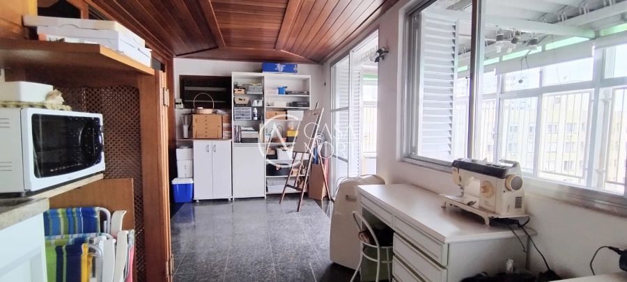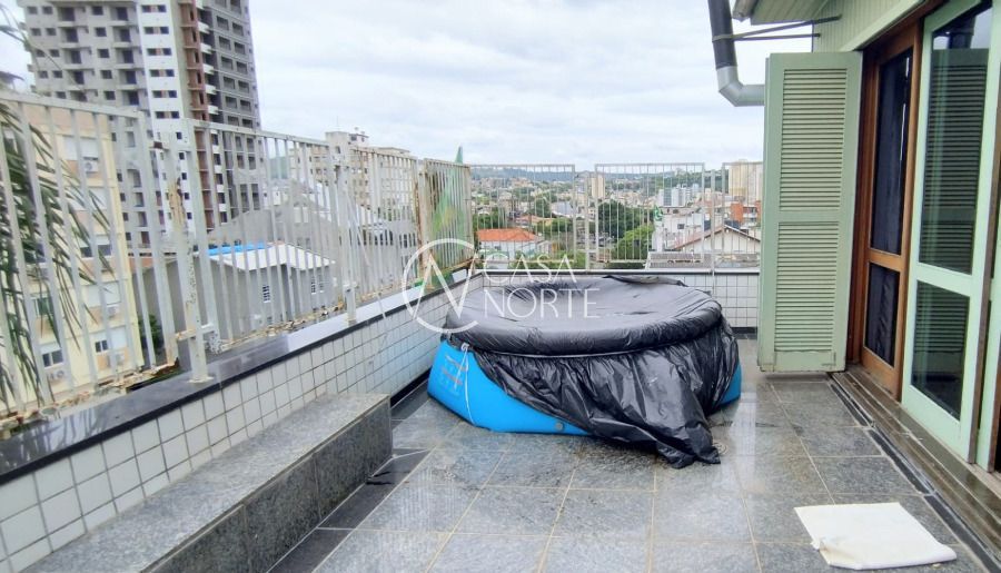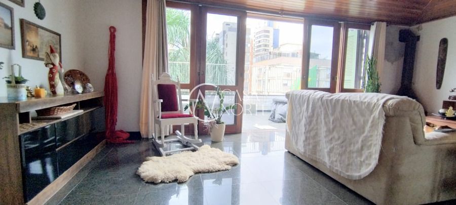 Cobertura com vista panorâmica de 235,52 m², 3 dormitórios sendo um suíte, living para dois ambientes, cozinha com armários, banheiro social, banheiro auxiliar, área de serviço, churrasqueira e banheiro na cobertura e uma vaga de garagem. Prédio com portaria 12hs, em centro de terreno e zeladoria.