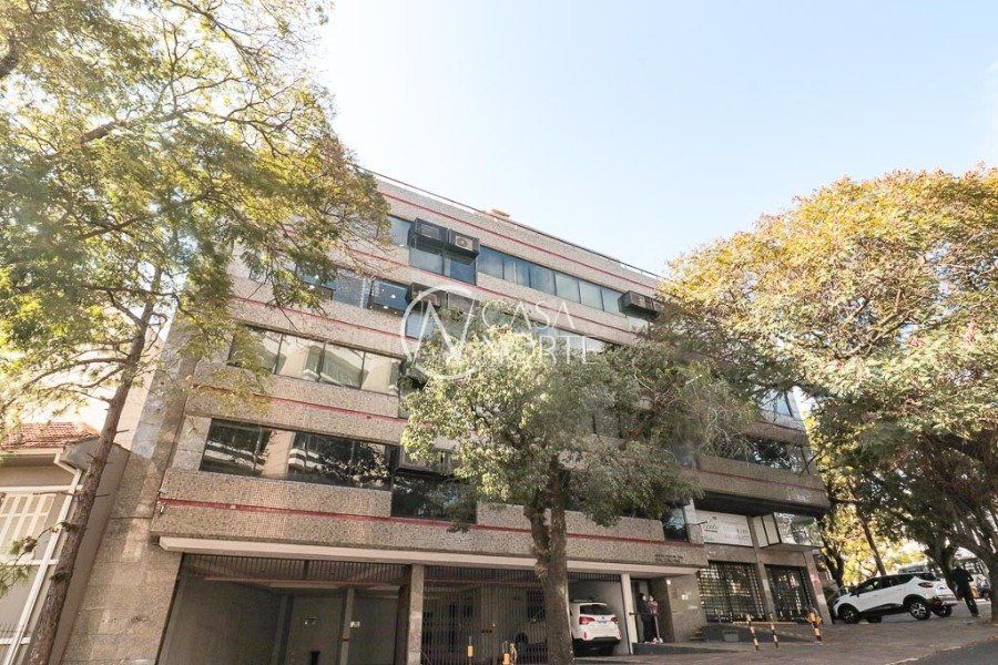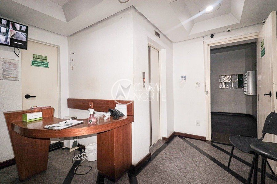Sala comercial no bairro Petropolis - Porto Alegre - área total 57,01 mobiliada, split, lavabo, piso carpete.