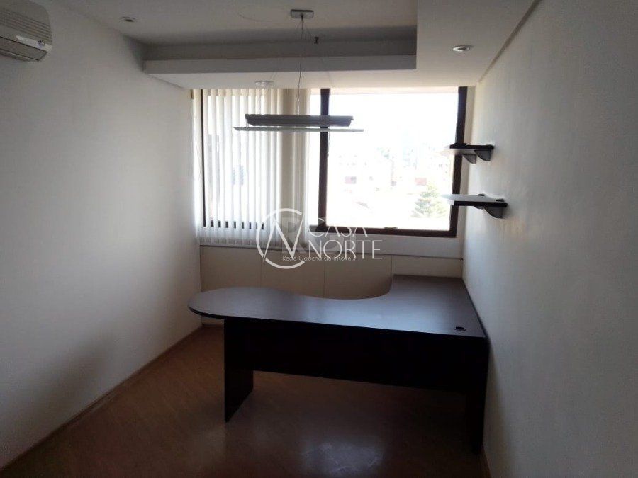 Sala comercial de frente com 48 m2 , recepção e dois ambientes de atendimento.
