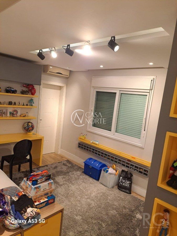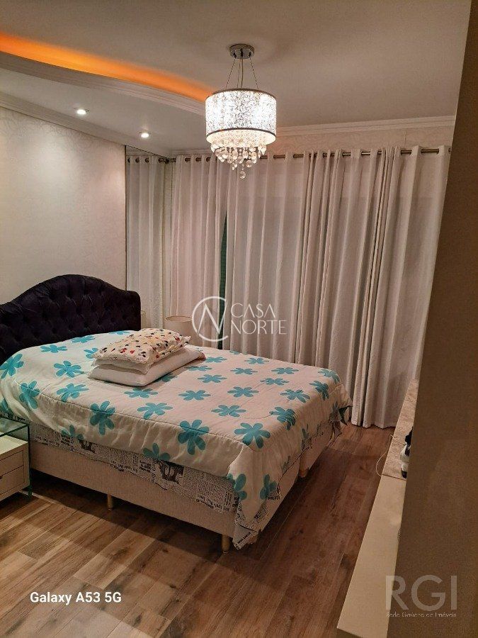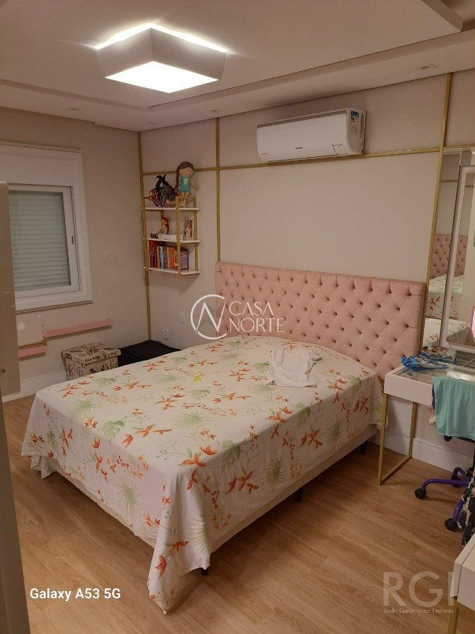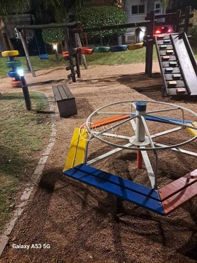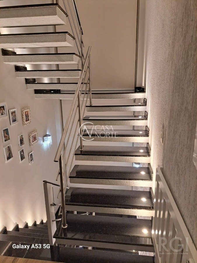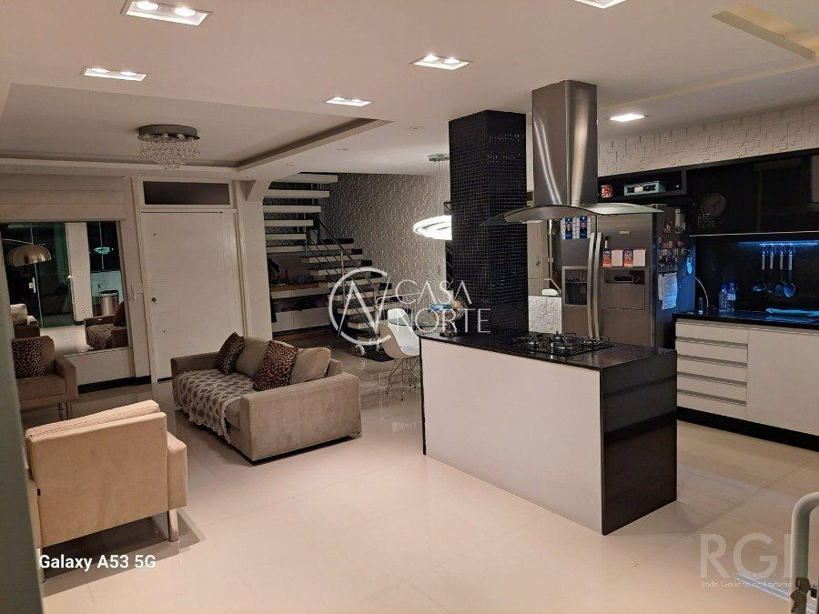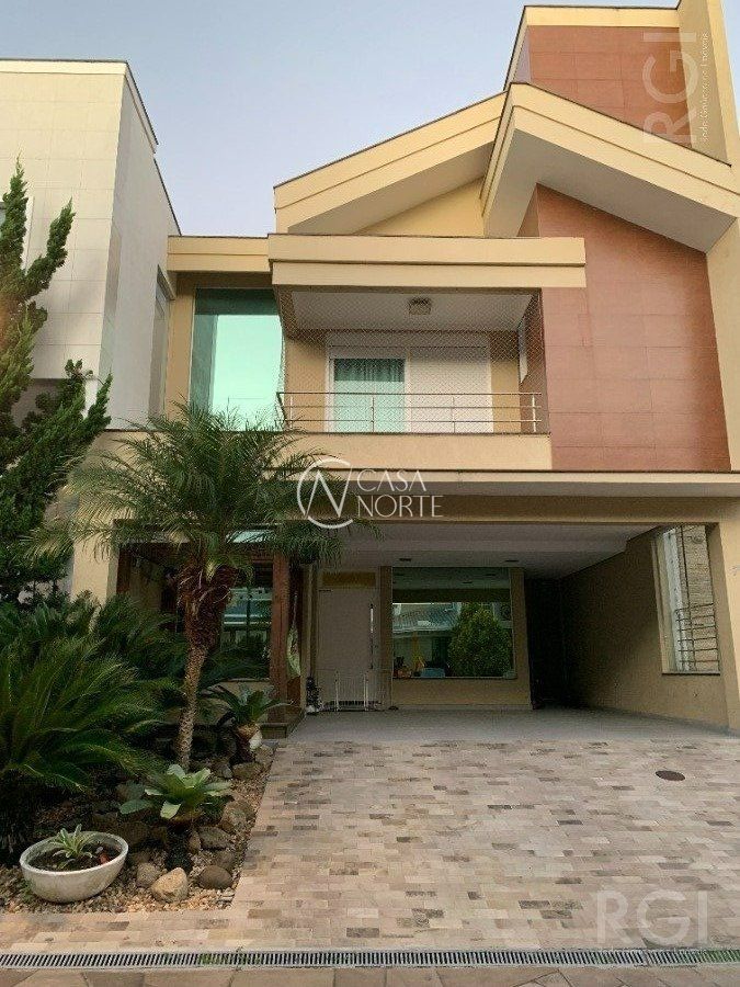 Casa em condomínio com 351m² de área construída, garagem para 4 carros, jardim e pergolado na entrada. 1º Andar com sala e cozinha integrada, espaço gourmet, lavanderia, jardim inverno, dispensa de alimentos, lavabo com chuveiro, área externa com deck e pergolado. 2º Andar com 4 suítes, sendo uma delas com banheira de hidromassagem, closet e lareira, outros dois quartos com closet e janelas automatizadas, todos quartos espaçosos. Ainda no 2º Andar com uma sala de estar íntimo com lareira e TV, corredor para quartos com amplo móvel laqueado que contempla frigobar estilo retro. 3º Andar com sala de cinema, escritório, lavabo e brinquedoteca. Cortina motorizada para vidros escada, sistema aquecimento solar e boiler para agua quente, sistema de geração de energia fotovoltaica conectada e aprovada com a rede da CEEE, sistema de internet conectada por fios por toda casa e wi-ffi (tipo mesh) de alta velocidade nos 3 andares. Ficam móveis fixos (casa mobiliada), cortinas, iluminação, cooktop, coifas, forno embutir cozinha, aparelhos de ar condicionado e aparelhos de sistema de internet. Poltronas, sistema de som e vídeo sala de cinema, aparelhos de TV não estão incluídos no preço, assim como alguns eletrodomésticos, negociação a parte conforme interesse.
