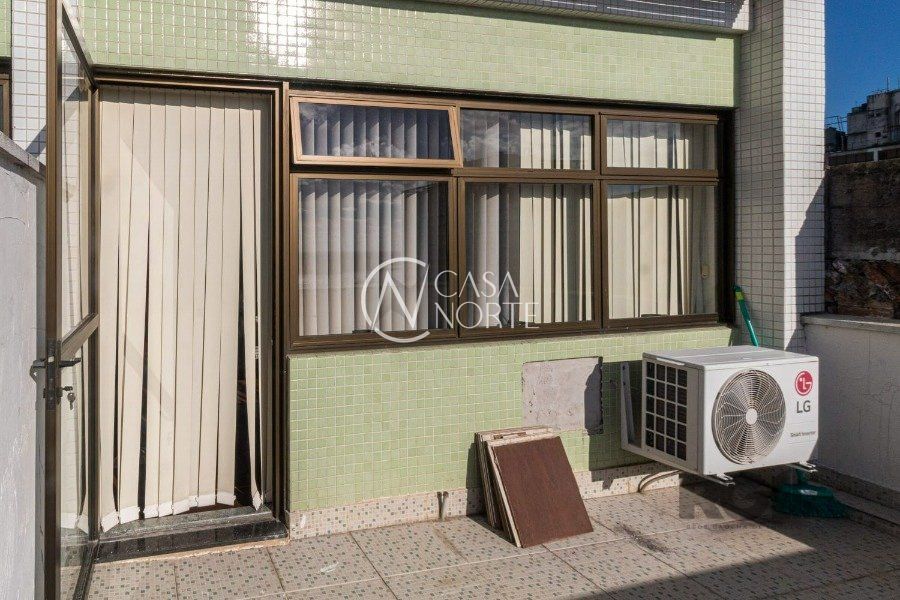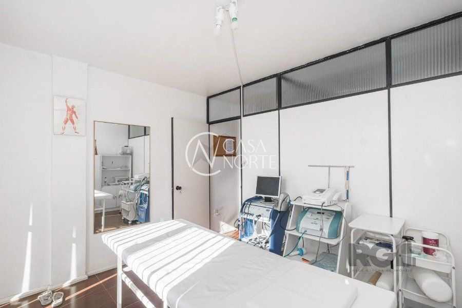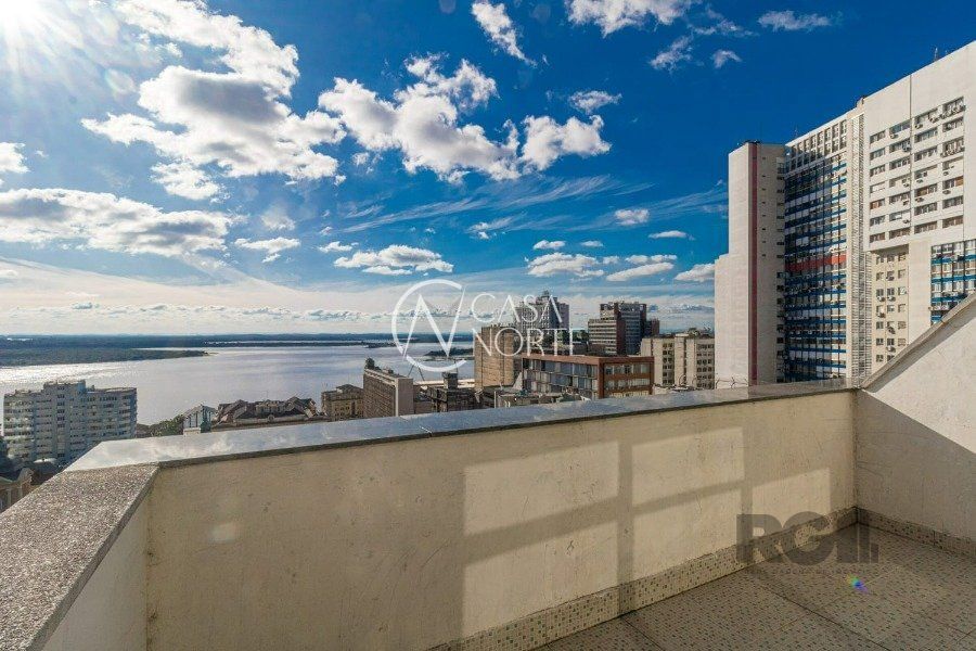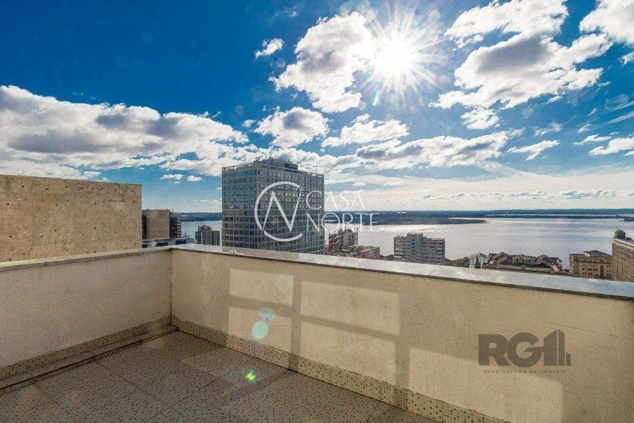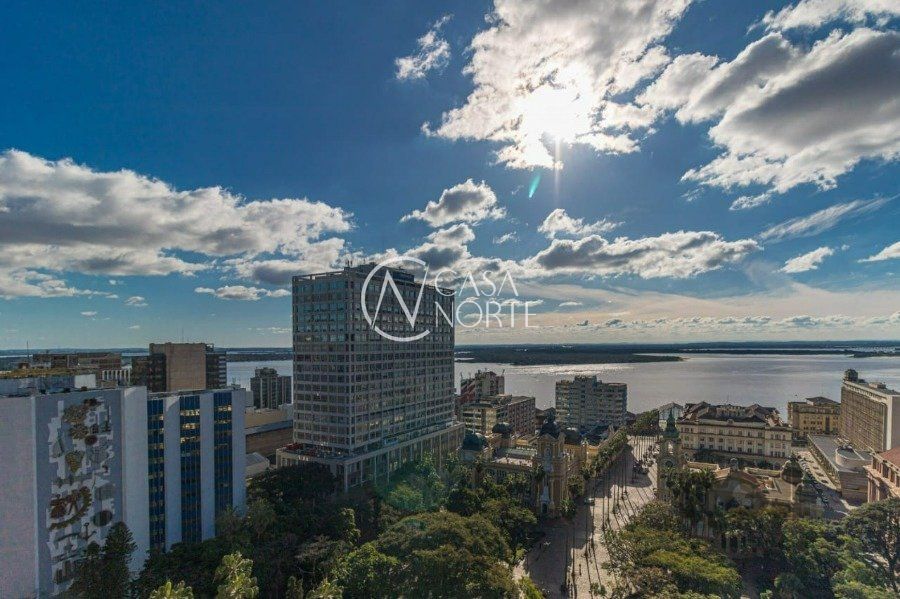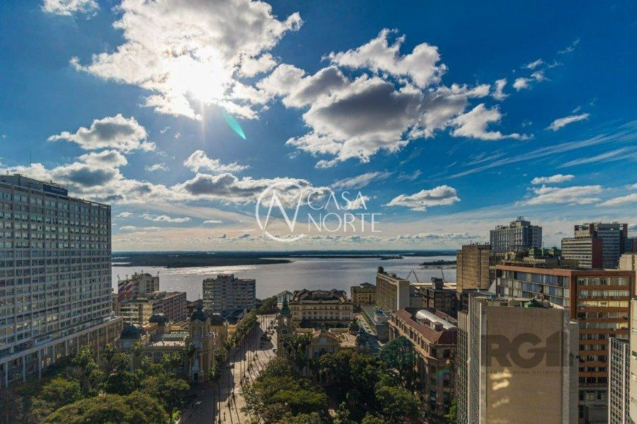 Sala comercial com 32,67 m² de área privativa, 2 salas, sendo uma de frente, com sacada e vista permanente para o rio Guaíba, um banheiro com chuveiro e hall de entrada.