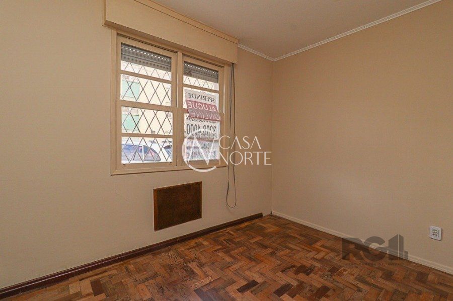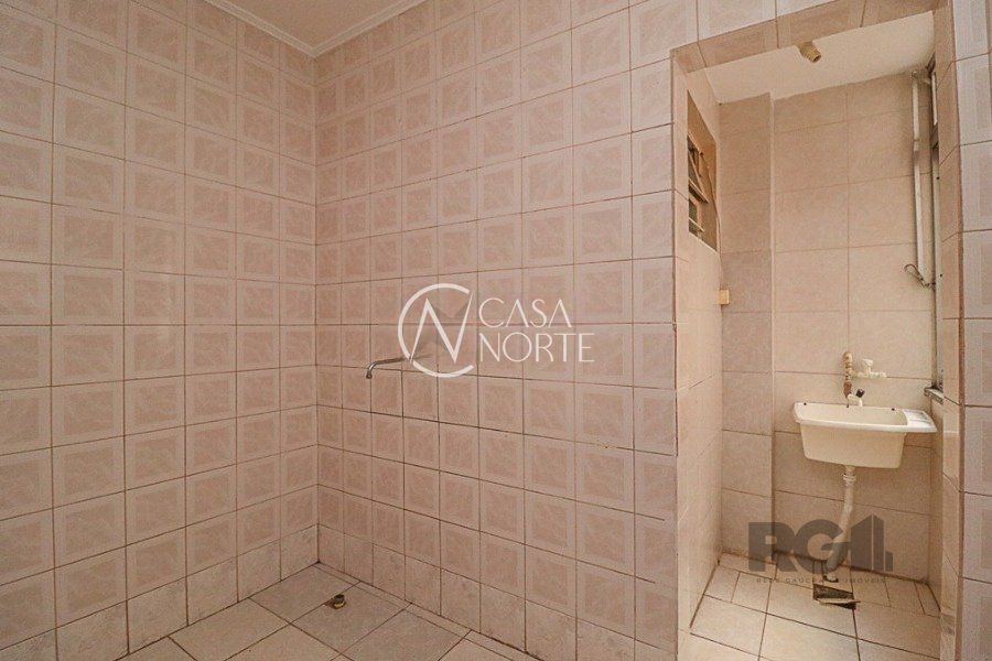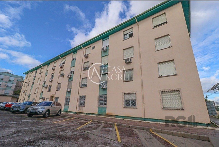 Apartamento próximo a Rua Icaraí, no Bairro Cristal, com 2 quartos, 1 banheiro social com box, 50,37 m2, 1° andar, frente, cozinha com pia e armários, área de serviço fechada.