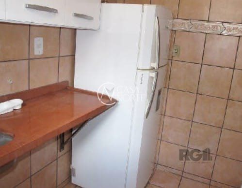 Apartamento tipo JK de 23,50 m², com 2 ambientes, cozinha com armários, fogão e geladeira, banheiro social e área de serviço, Prédio com zelador e poertaria 24 horas. Sem vaga de garagem e sem elevador.