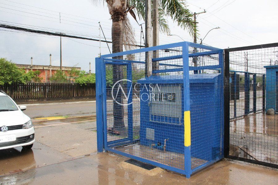 Pavilhão completamente reformado com 747,74 m², duas vagas de estacionamento, área administrativa com piso cerâmico, três banheiros com piso em cerâmica e box, amplo pátio para manobra de caminhões com piso de concreto com capacidade de 15 toneladas/m², portão eletrônico e estacionamento. Telhado com cobertura de aluzinco e telhas translúcidas.