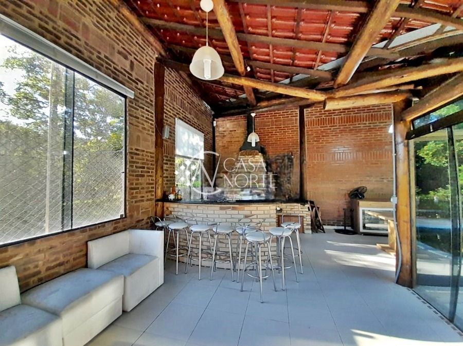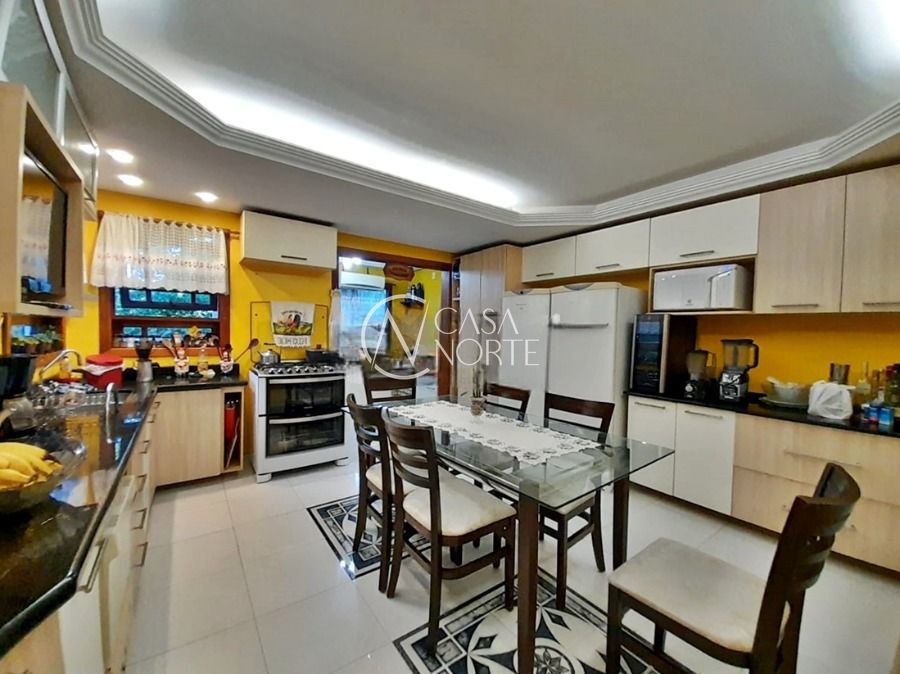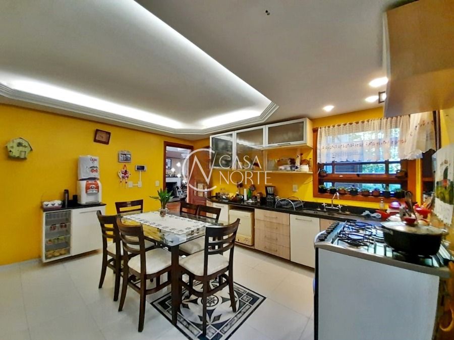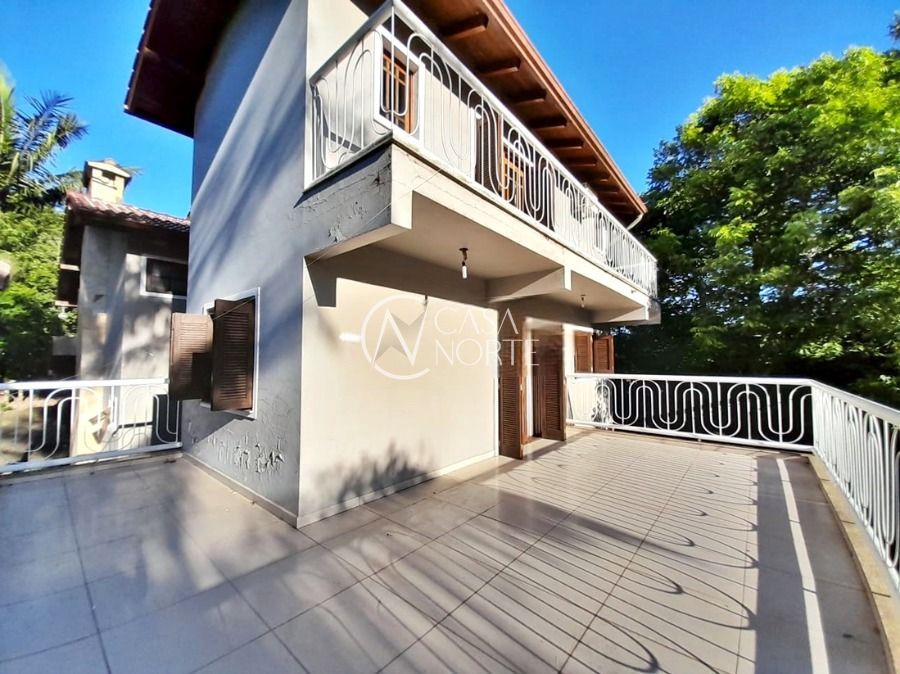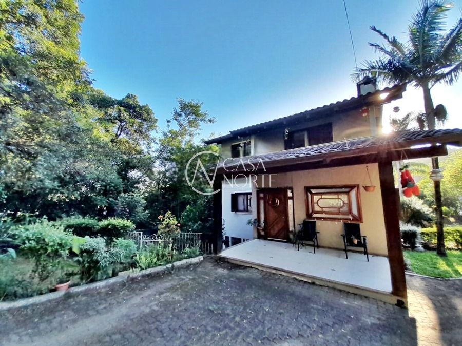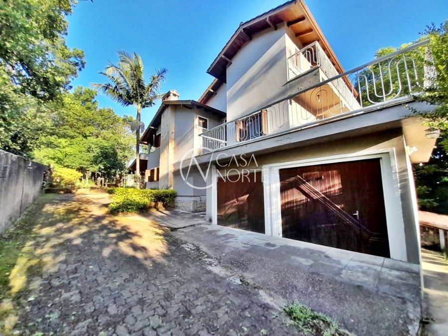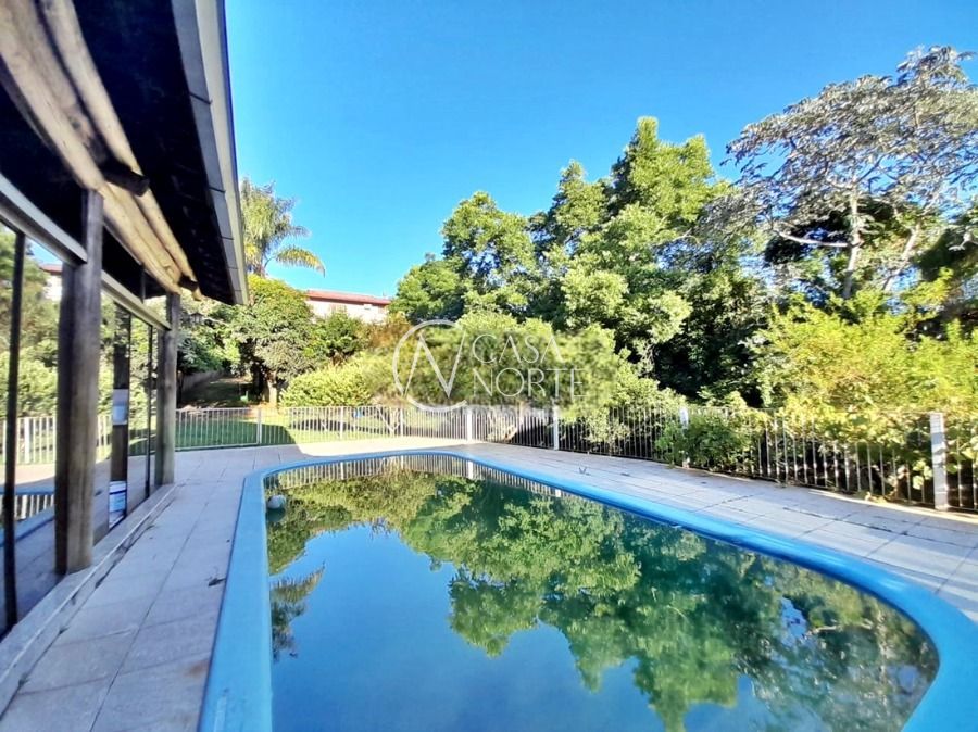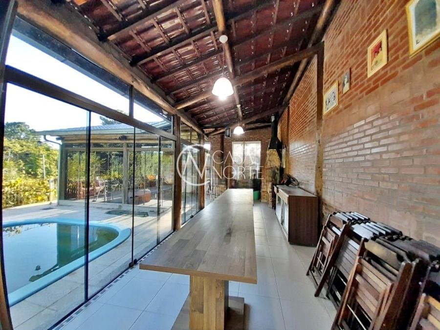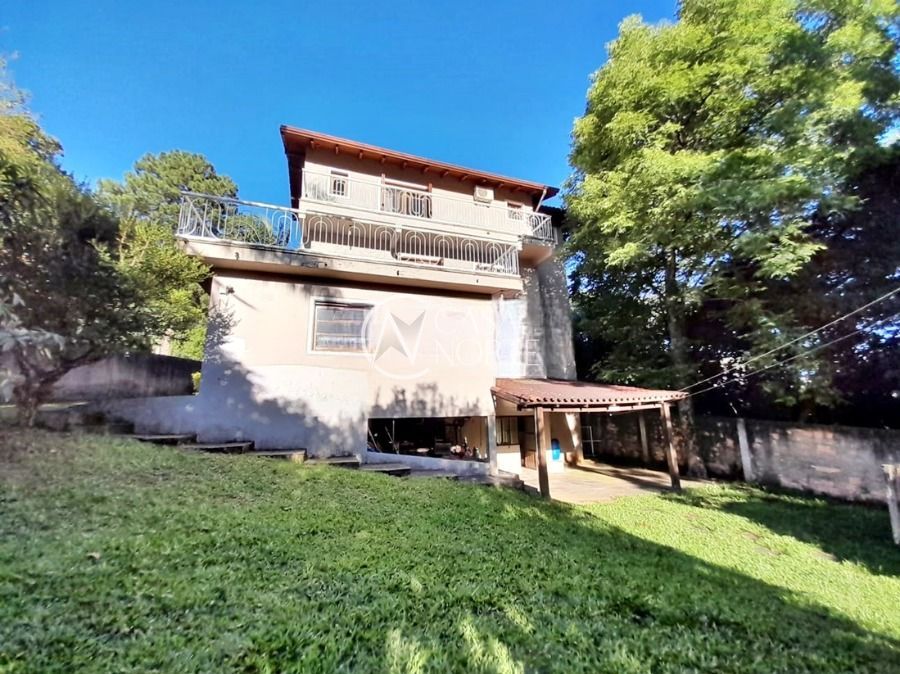 Casa de 5 dormitórios no Bairro Vila Nova, Estrada das Três Meninas. Dispõe de 3 suítes, sendo uma suíte master com closet e hidro, living para 2 ambientes com lareira, escritório, sala de estar, lavanderia, cozinha ampla, banheiro social e sacada com vista panorâmica. No lado externo possui salão de festas com churrasqueira e fogão a lenha, piscina e campo de futebol. Cômodos amplos, bem arejados e iluminados. Terreno com 3.546 m2. Possui 5 vagas de garagem. Localização próxima a Av. Professor Oscar Pereira.
