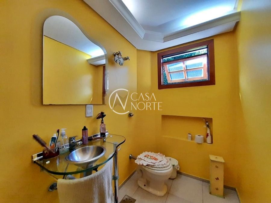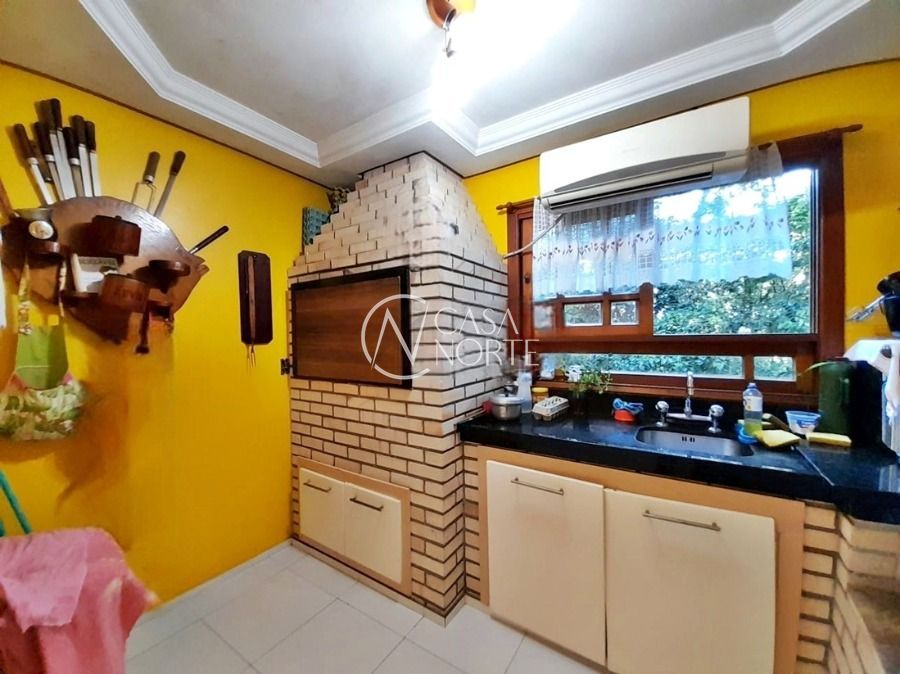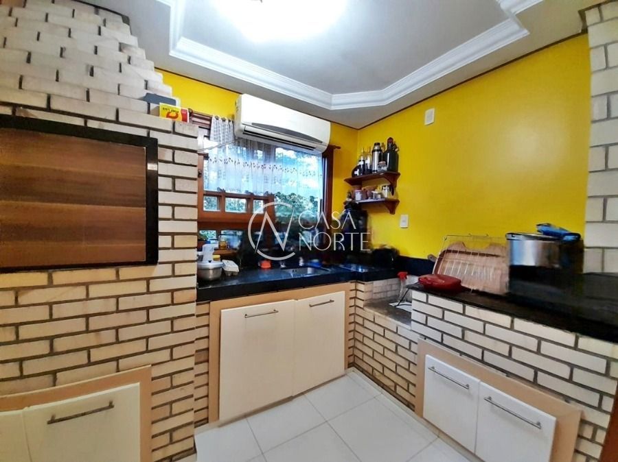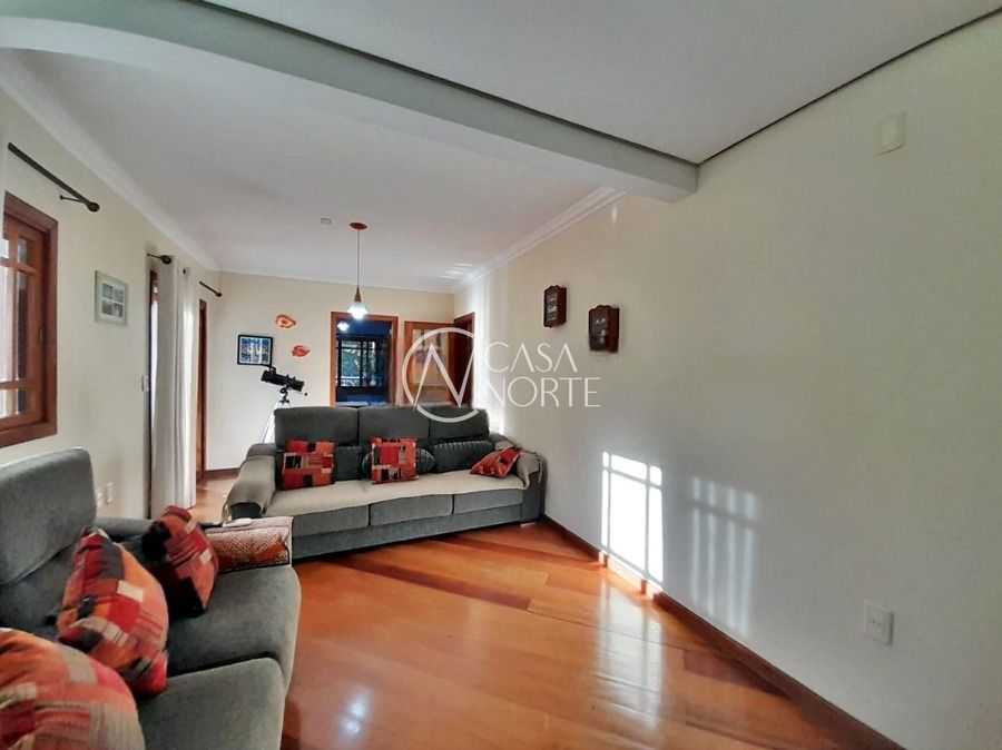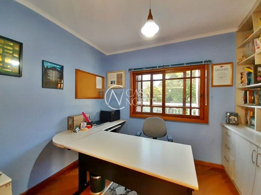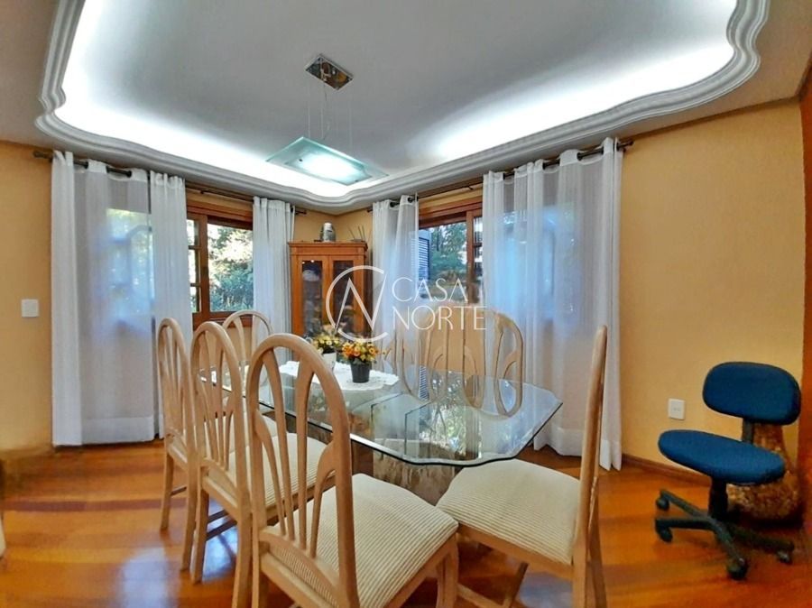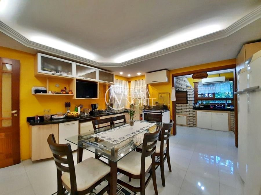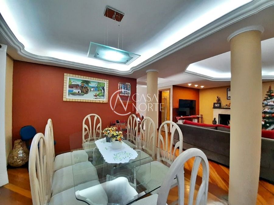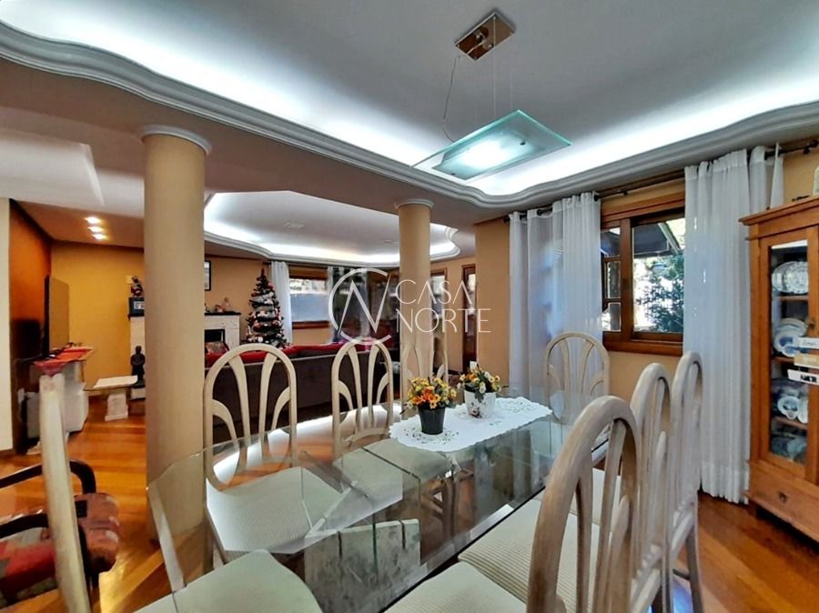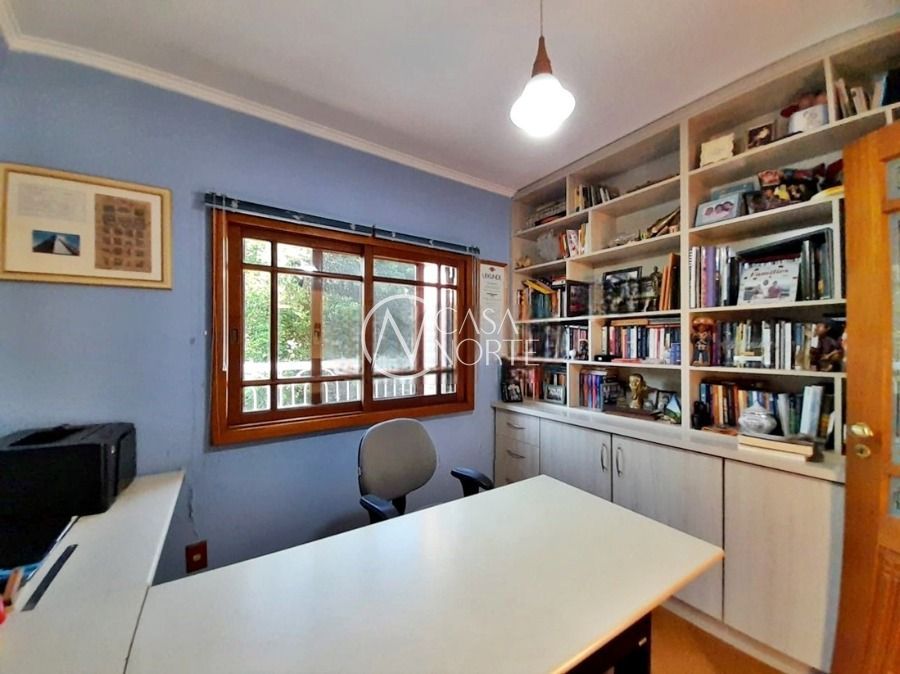 Casa de 5 dormitórios no Bairro Vila Nova, Estrada das Três Meninas. Dispõe de 3 suítes, sendo uma suíte master com closet e hidro, living para 2 ambientes com lareira, escritório, sala de estar, lavanderia, cozinha ampla, banheiro social e sacada com vista panorâmica. No lado externo possui salão de festas com churrasqueira e fogão a lenha, piscina e campo de futebol. Cômodos amplos, bem arejados e iluminados. Terreno com 3.546 m2. Possui 5 vagas de garagem. Localização próxima a Av. Professor Oscar Pereira.