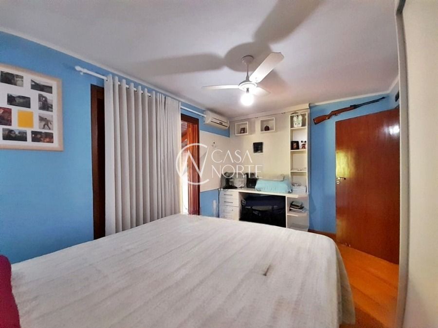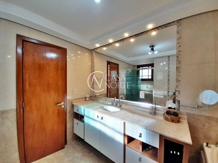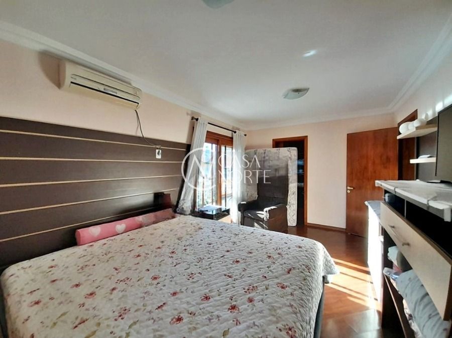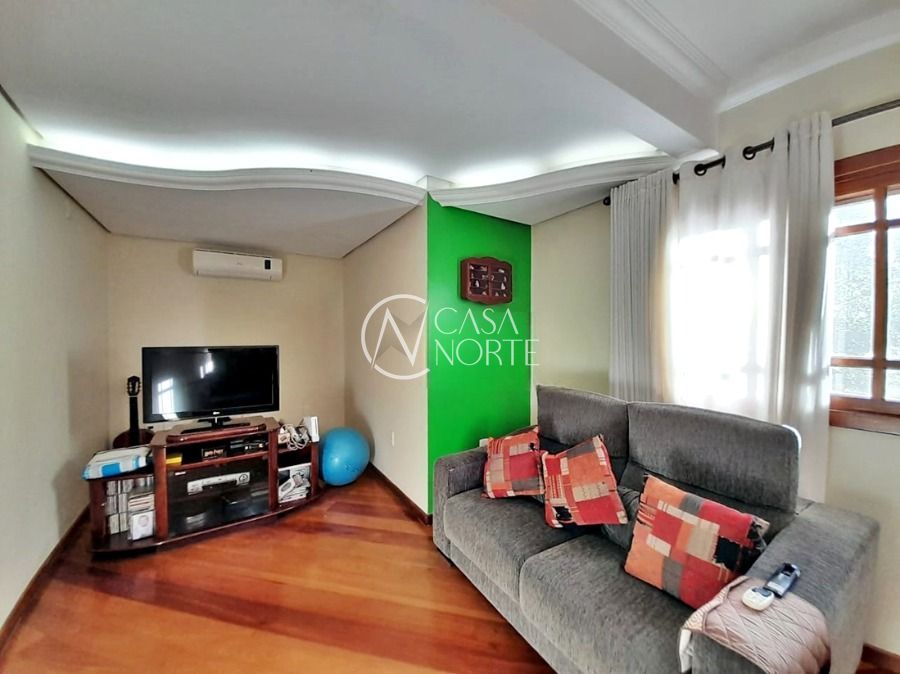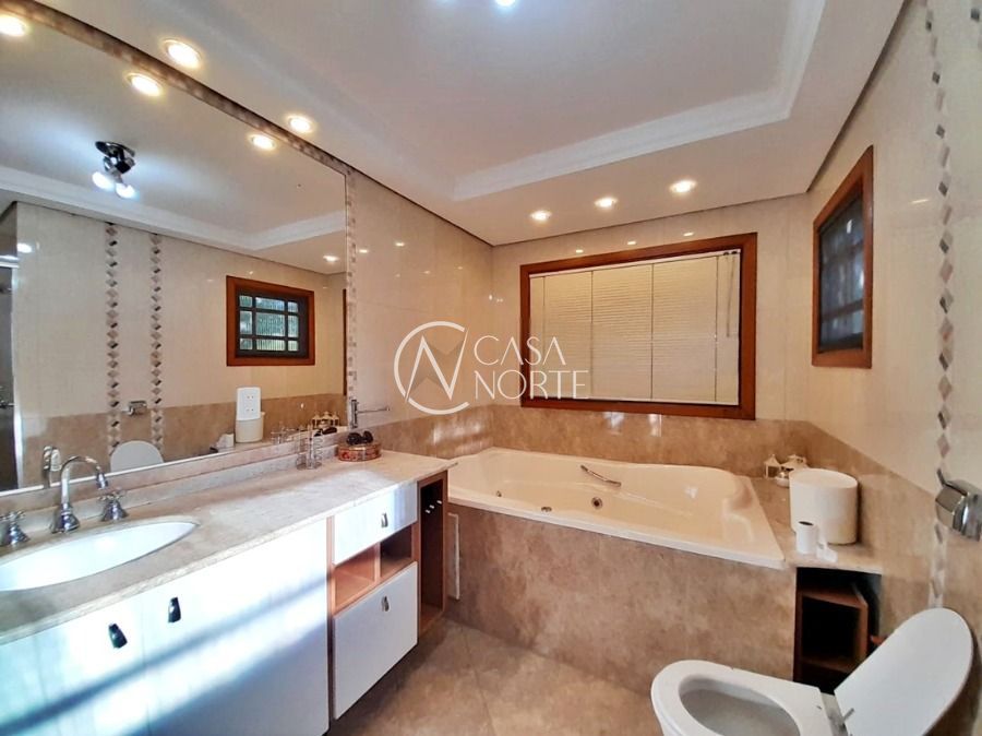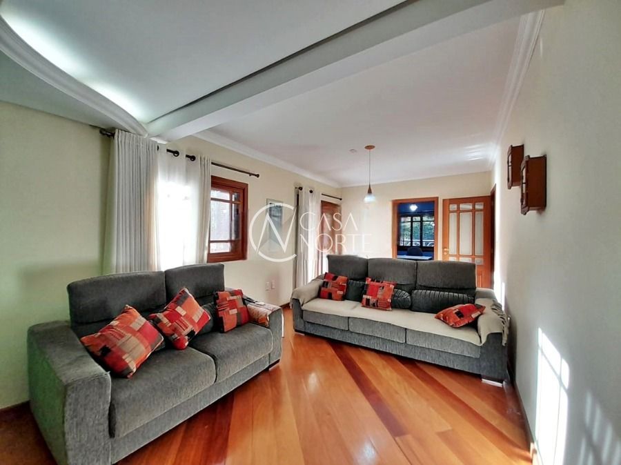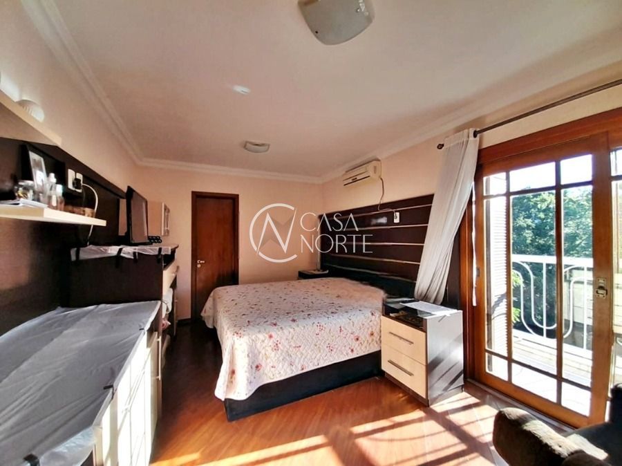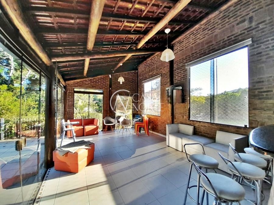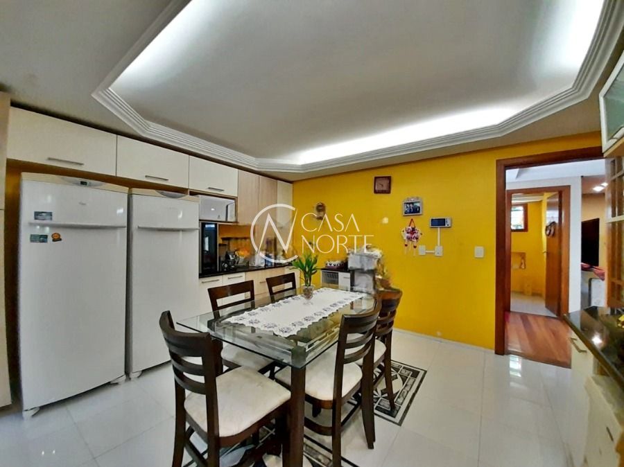 Casa de 5 dormitórios no Bairro Vila Nova, Estrada das Três Meninas. Dispõe de 3 suítes, sendo uma suíte master com closet e hidro, living para 2 ambientes com lareira, escritório, sala de estar, lavanderia, cozinha ampla, banheiro social e sacada com vista panorâmica. No lado externo possui salão de festas com churrasqueira e fogão a lenha, piscina e campo de futebol. Cômodos amplos, bem arejados e iluminados. Terreno com 3.546 m2. Possui 5 vagas de garagem. Localização próxima a Av. Professor Oscar Pereira.