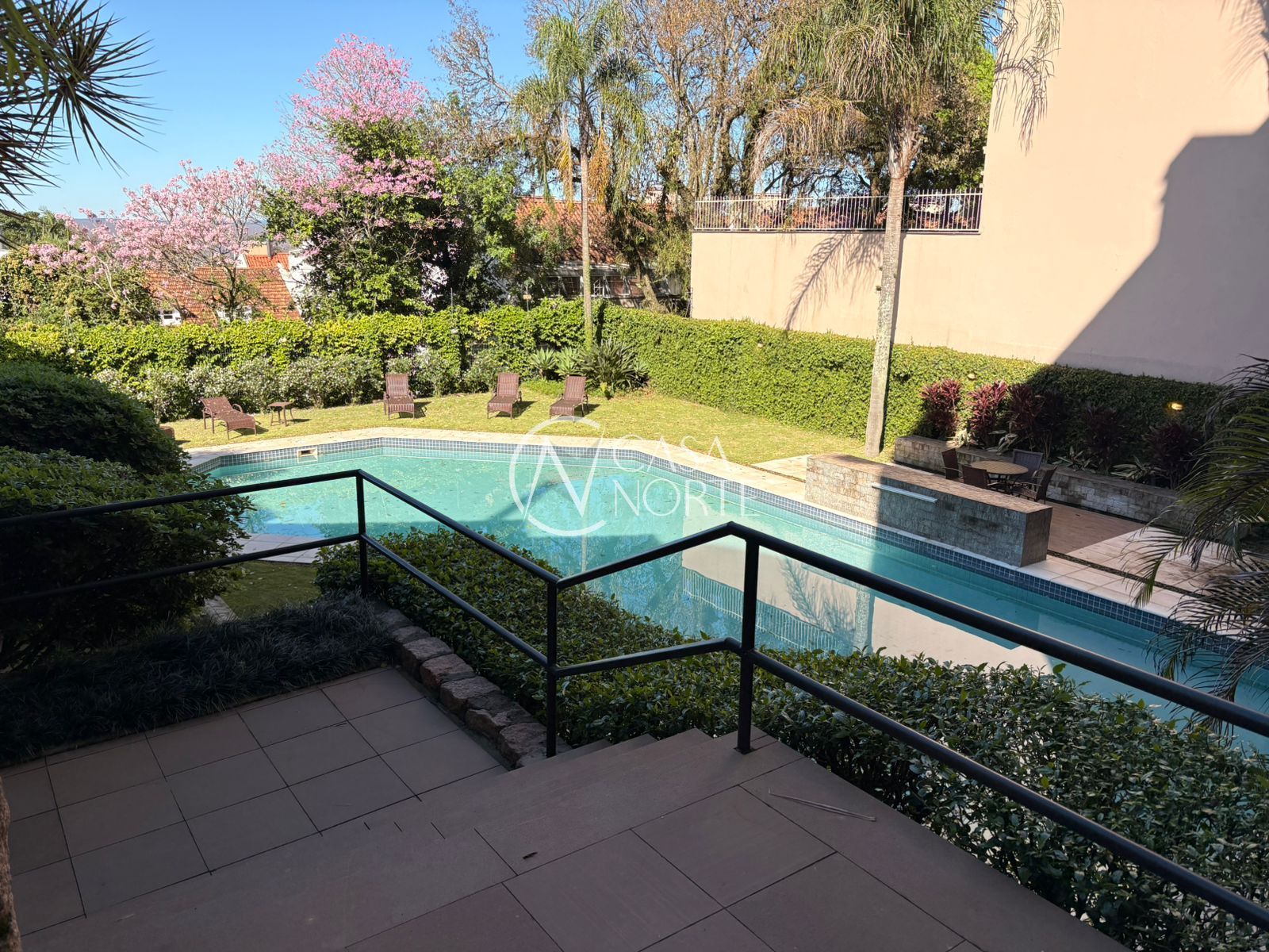 Casa no Condomínio Villa Dei Fiori no bairro Tristeza, 03 dormitórios sendo uma suíte, 197mq privativos, toda reformada, instalação nova de splits na sala e nos dormitórios, gabinete, sala espaçosa e clara com lareira, churrasqueira, lavabo, cozinha nova, banheiro social que atende aos dois quartos, dependência completa de empregada, área de serviço, pequeno pátio nos fundos, garagem espaçosa para dois carros. Condomínio com piscina, salão de festas com 02 andares e 02 lareiras, linda vista. Local alto e privilegiado no coração da Zona Sul de Porto Alegre.