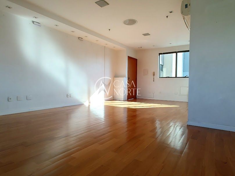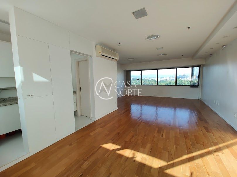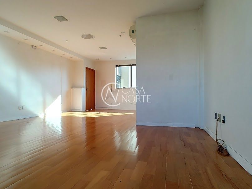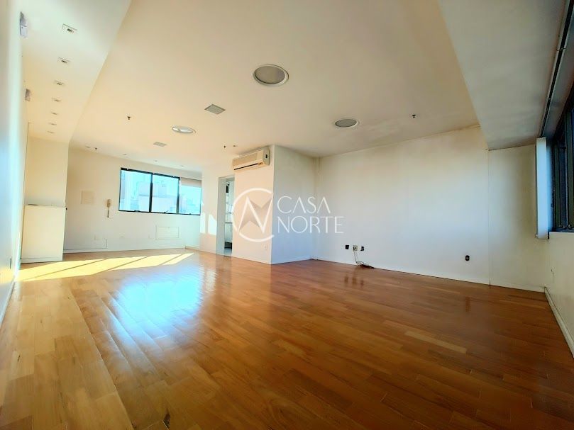 Sala comercial ampla com garagem escriturada, de frente para a Redenção, banheiro, piso parquet, copa com armários e bancada em granito; edifício com 2 elevadores, portaria, sala para reuniões toda equipada. Localização excelente junto ao bairro Bom Fim.