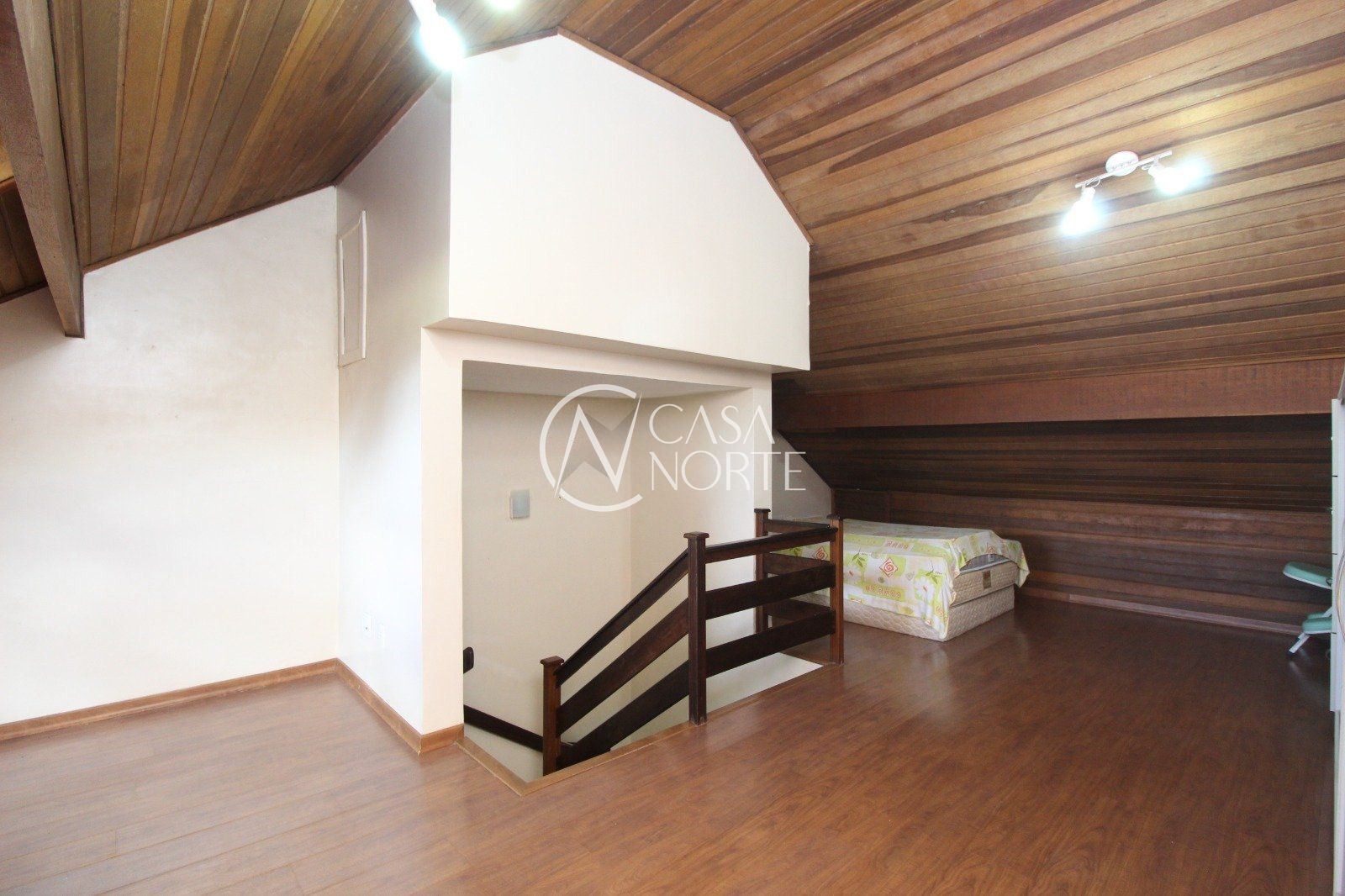 No último andar, um sótão versátil pode ser usado como quarto extra, escritório ou sala de lazer.