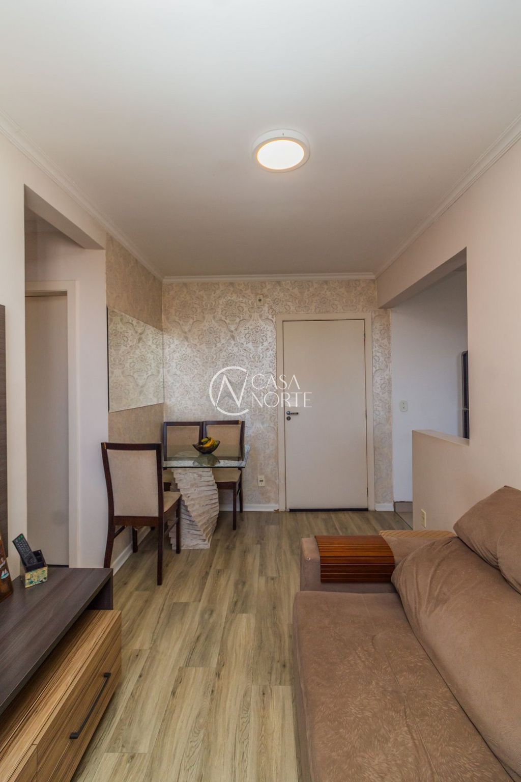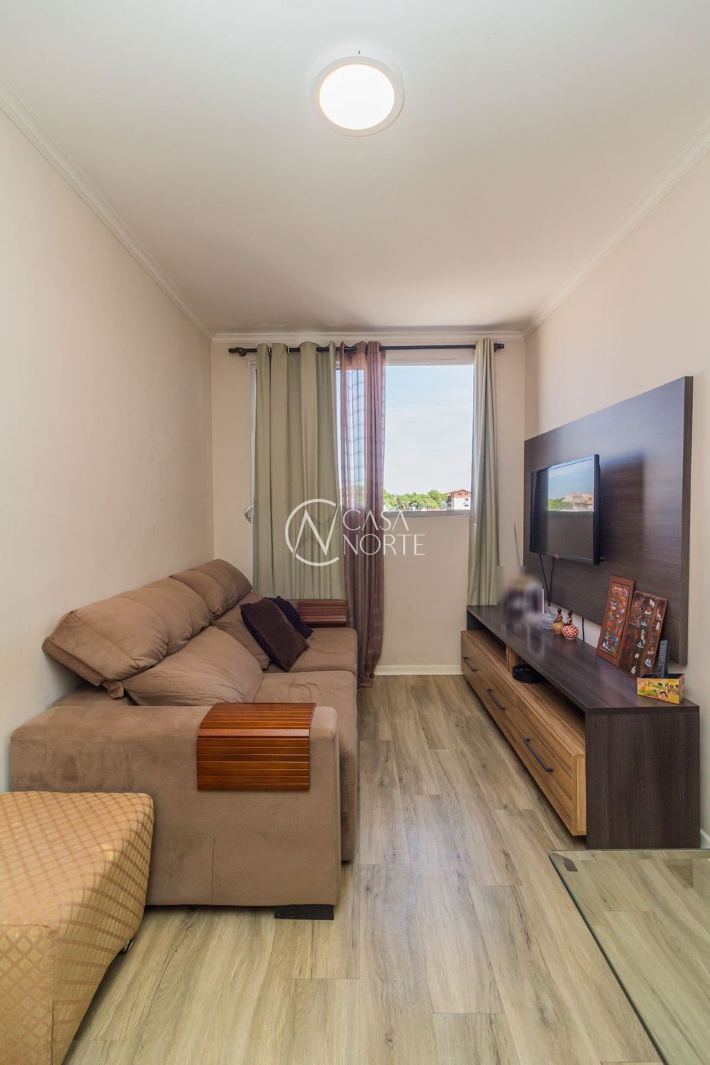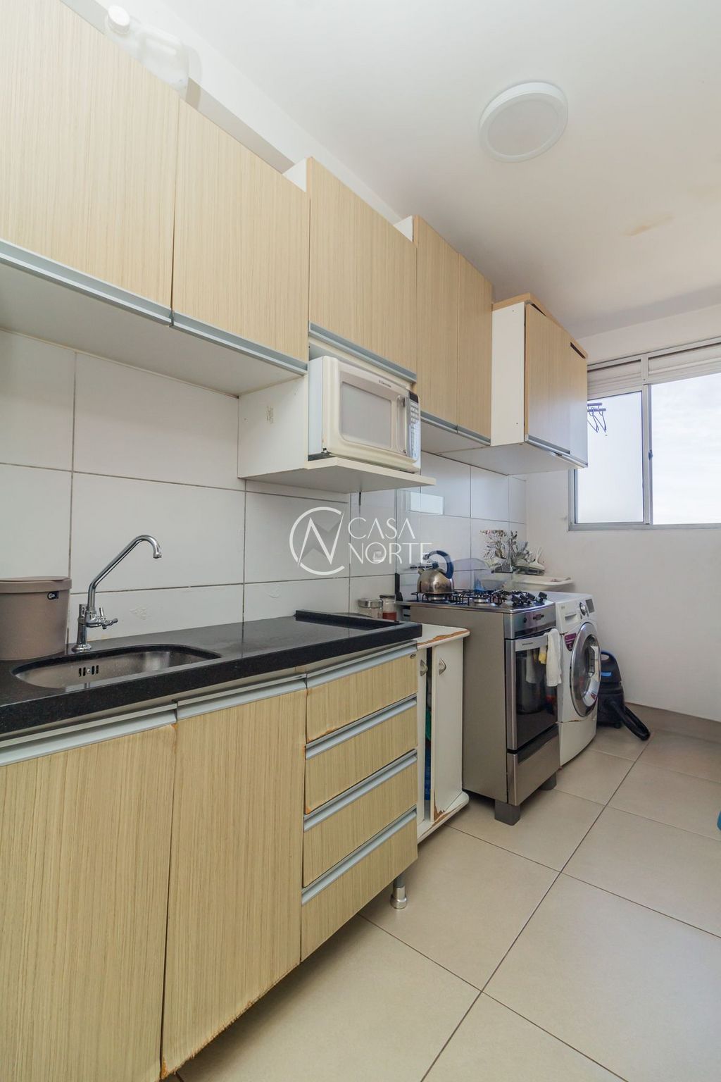 Sala em 2 ambientes, cozinha americana e área de serviço com ventilação natural. 2 dormitórios com privacidade, sendo 1 suíte e banheiro auxiliar.