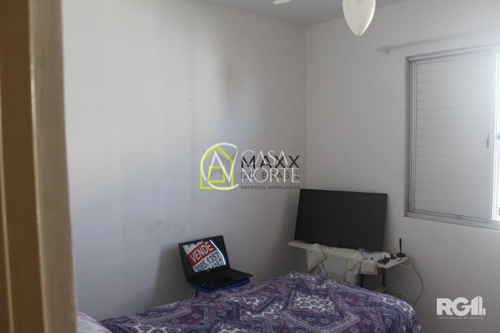 Condomínio Barcelona. Apartamento em bom estado, desocupado, pronto para morar, com sala, dois dormitórios, banheiro social, cozinha com pia e área de serviço, no bairro Rubem Berta, na rua dos Maias. Condomínio fechado, com uma vaga de estacionamento rotativo, além de ótima infra com portaria 24h, 3 salões de festa com churrasqueira, campo de futebol, pracinha e estacionamento. Agende sua visita!!