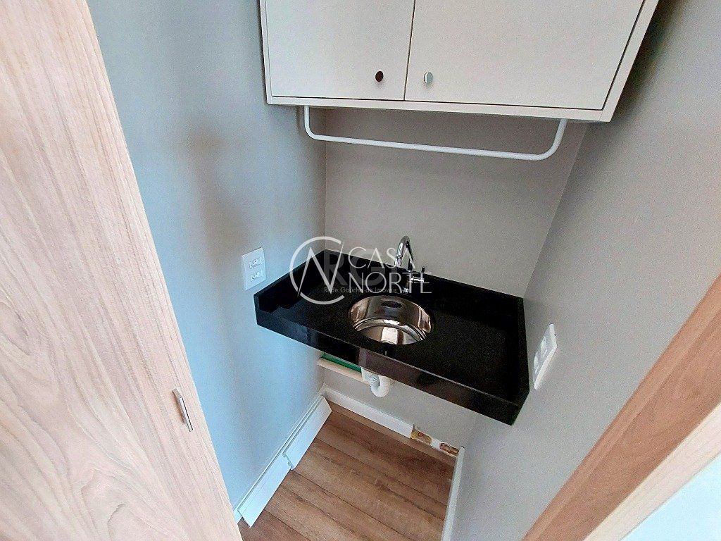 SALA/CONJUNTO COMERCIAL MOBILIADA - Imóvel com 38,32 m² de área construída, com vaga de garagem escriturada (nº 248 - 10,58 m²) dividida em recepção, duas salas, banheiro e pequena copa. A sala será vendida totalmente mobiliada