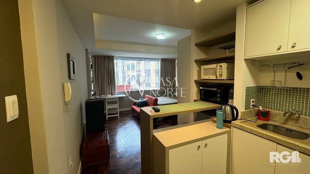 Excelente oportunidade de compra de apartamento JK mobiliado localizado na Avenida João Pessoa, no bairro Farroupilha em Porto Alegre. Com 22m² de área privativa, possui com elevador e vista para os fundos.