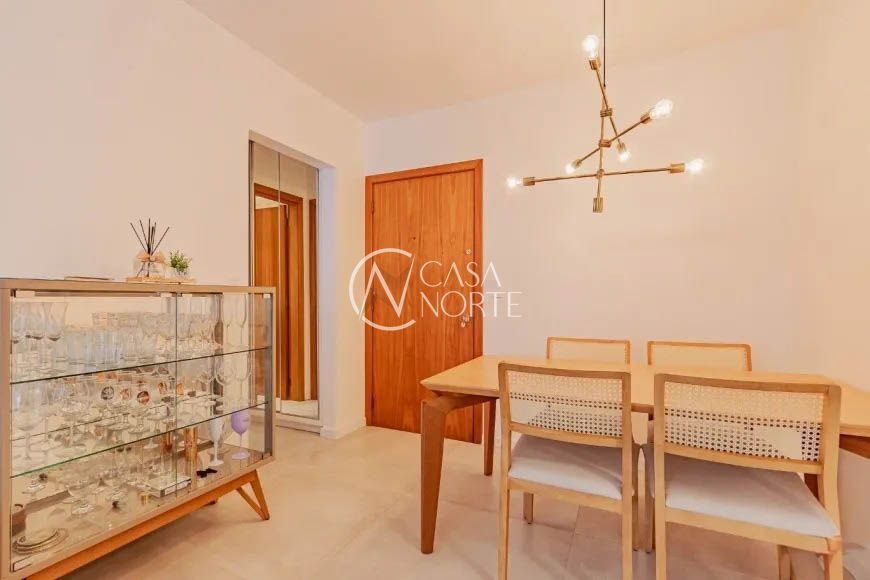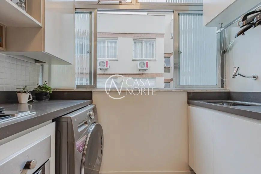 Apartamento de 46m², mobiliado, 1 dormitório, living de 2 ambientes com sacada integrada e churrasqueira, cozinha grande planejada e equipada com armários e elétros, área de serviço separada com junker instalado e água quente na cozinha e banheiro, ar condicionado no dormitório, 1 banheiro social e 1 vaga de garagem coberta e escriturada. Disposto em andar médio e com ótima vista, orientação solar (Leste / Oeste).