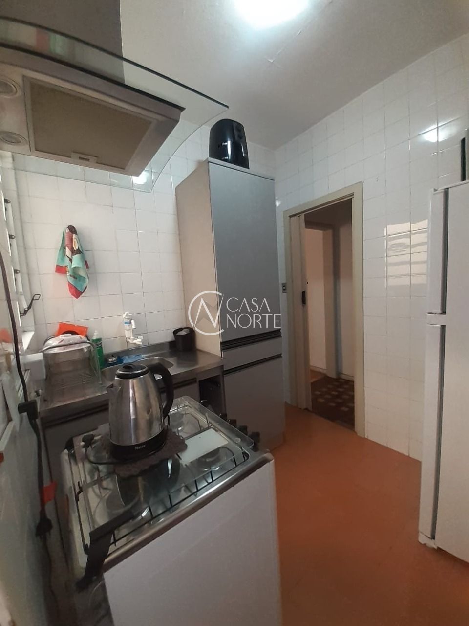 Apartamento de um dormitório pronto para morar com um lance de escada. Cozinha, área de serviço, living, banheiro social com ventilação natural e o dormitório.