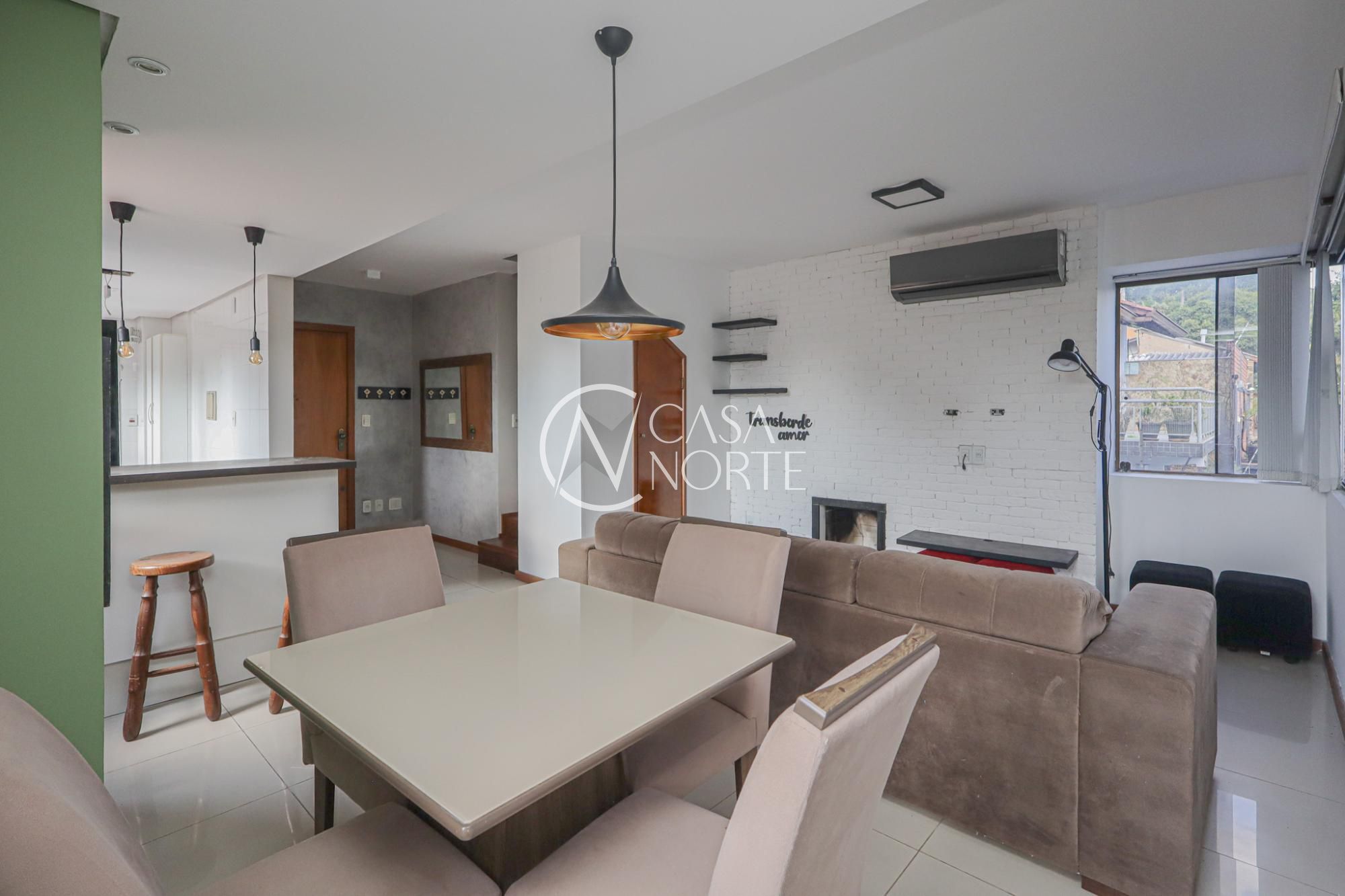 Apartamento duplex mobiliado com 82 m² de área privativa com 2 dormitórios sendo 2 suítes, living amplo para 2 ambientes com lareira e churrasqueira, lavabo, cozinha americana montada com área de serviço. Possui 1 vaga de garagem coberta e escriturada.