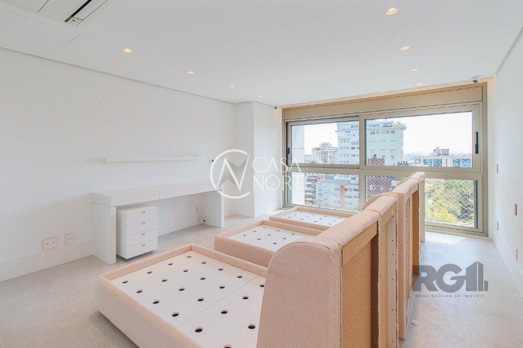 Localizado na região mais nobre do bairro Moinhos de Vento, a poucos passos do Shopping Moinhos e do Parcão, traz para o bairro um espaço único que redefine o conforto e o prazer de viver bem. O imóvel conta com 4 suítes, lavabo, dependência de empregada, lareira e churrasqueira, além de um amplo living e 04 vagas de garagem. O condomínio possui infraestrutura de lazer completa com salão de festas, espaço gourmet, piscina térmica e SPA, sauna, sala de massagem e um espaço na área externa com deck e paisagismo, Aquecimento Central, Brinquedoteca, Churrasqueira Condomínio