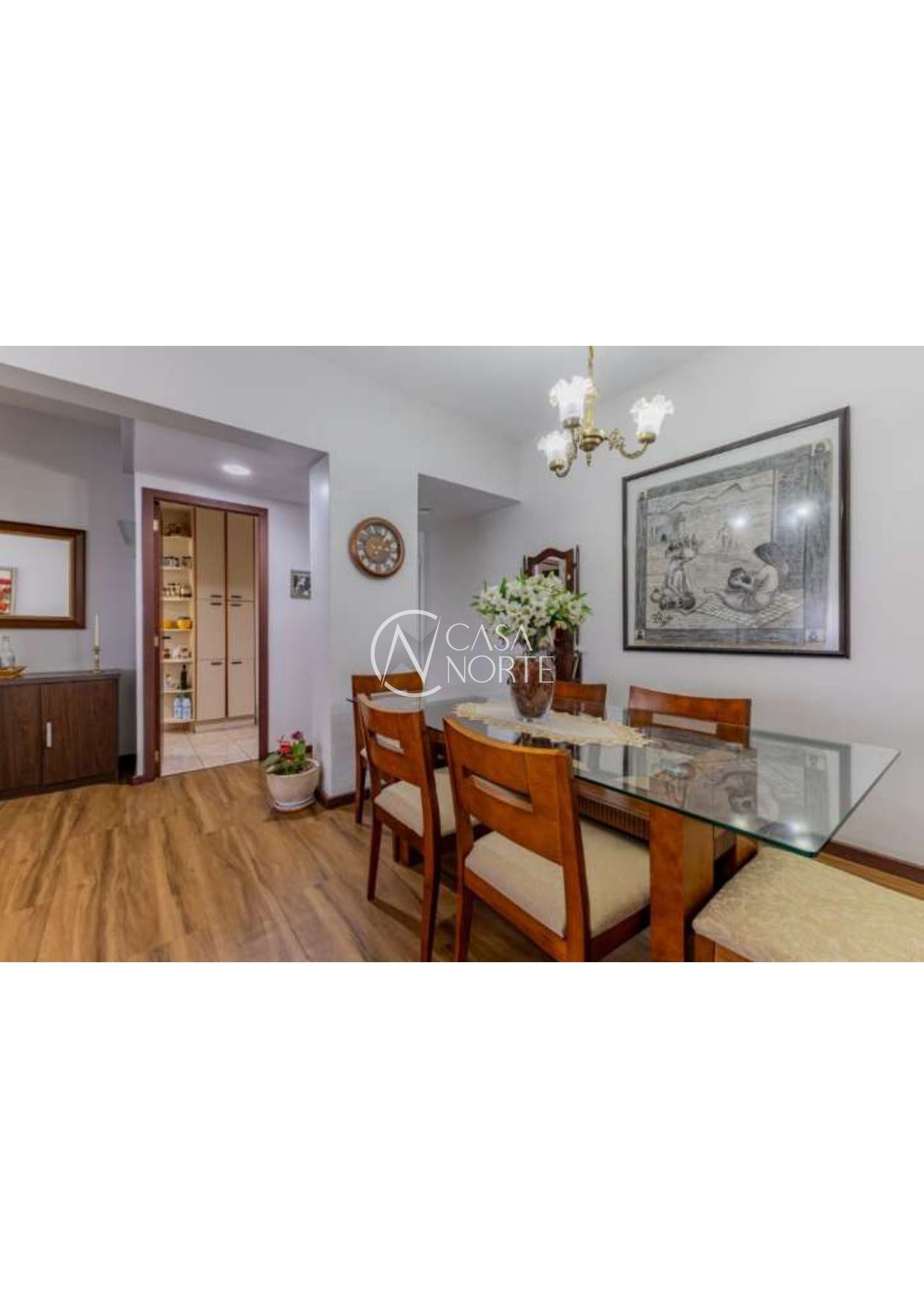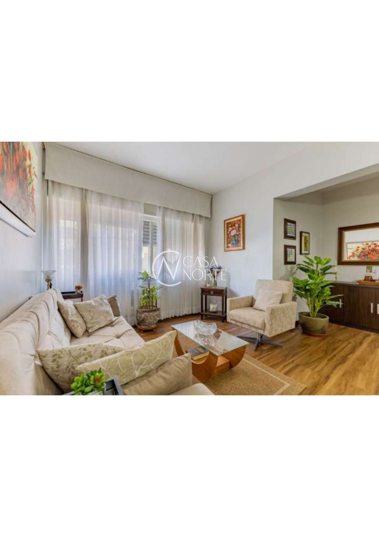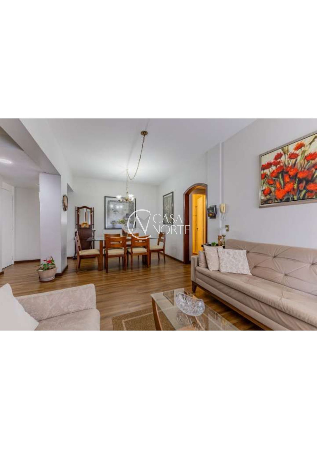 3 Dormitórios ( 1 suite ), banho social, living 2 ambientes em piso laminado, cozinha, área de serviço e dependência de empregada ( transformada em closet ).