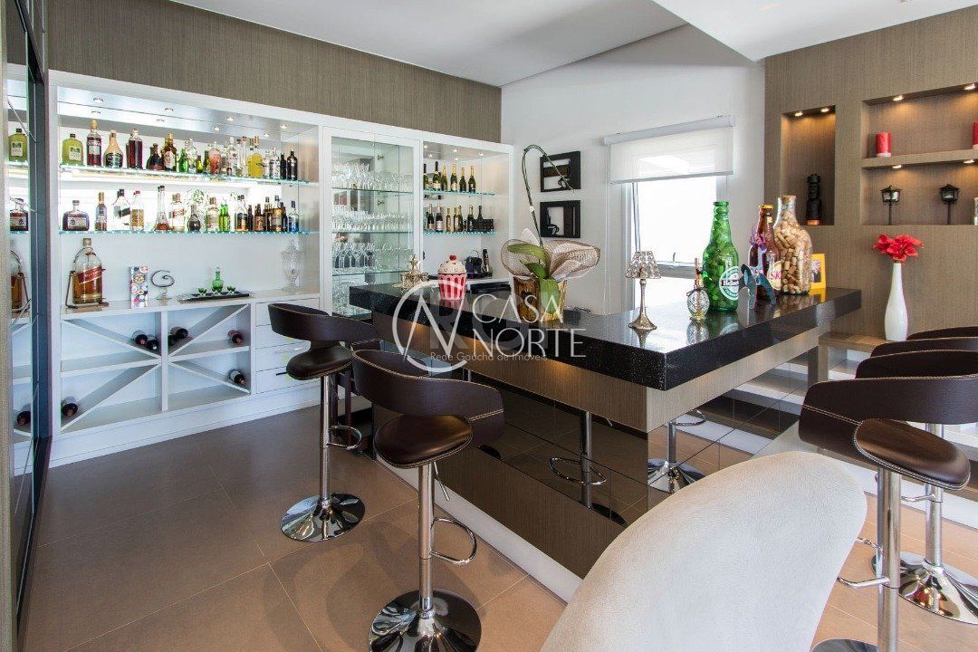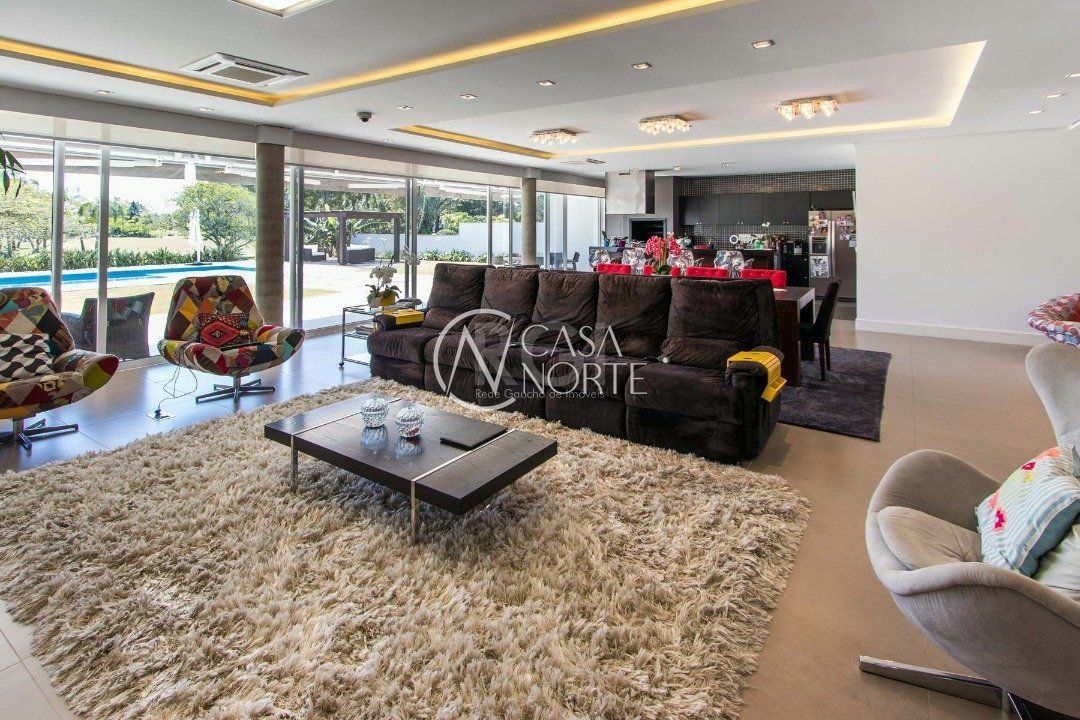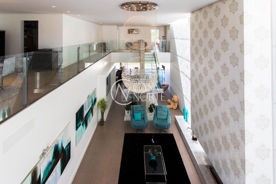 Na entrada, uma linda sala da lareira, enorme living, ambiente de bar, espaço gourmet com churrasqueira.