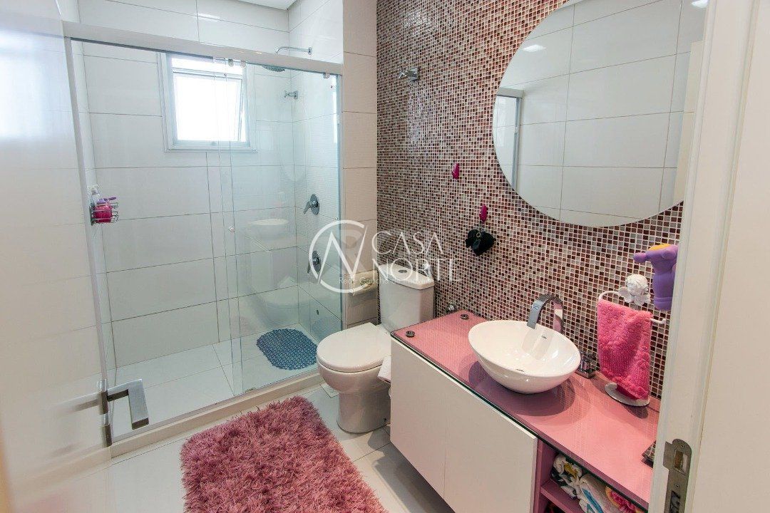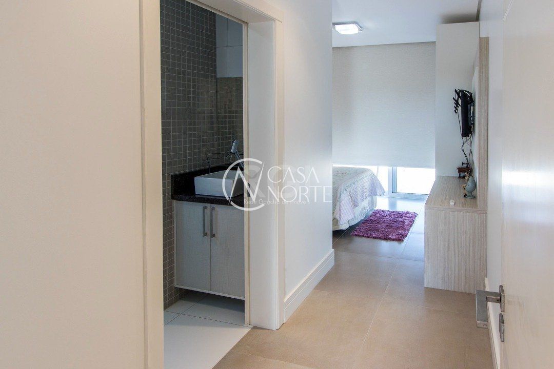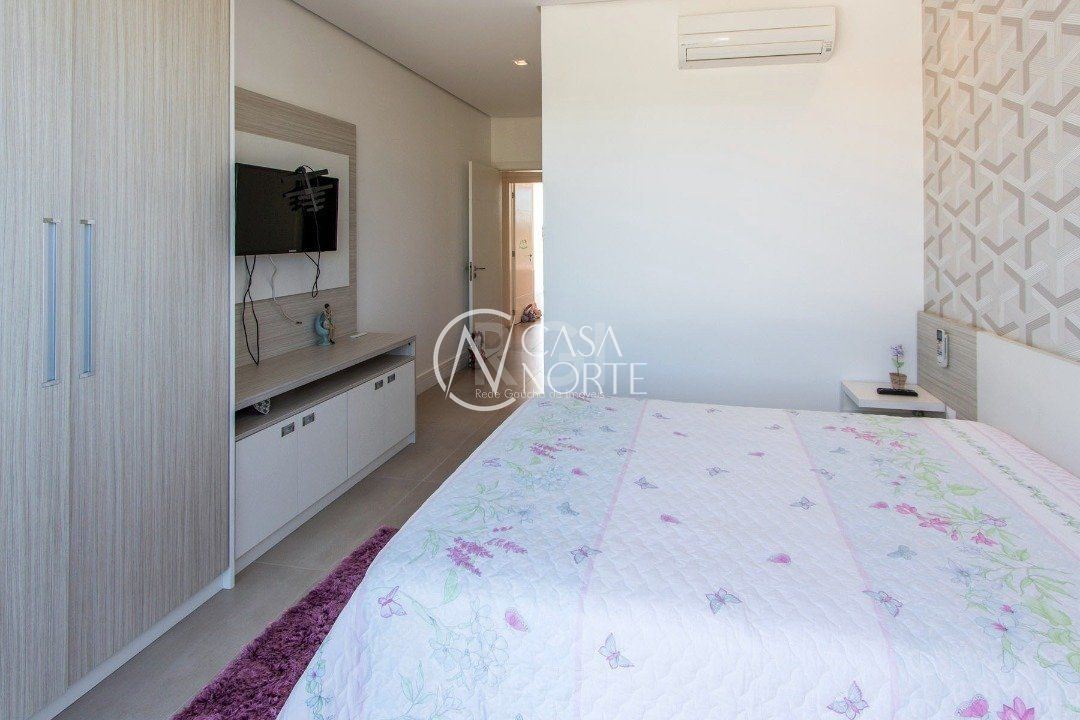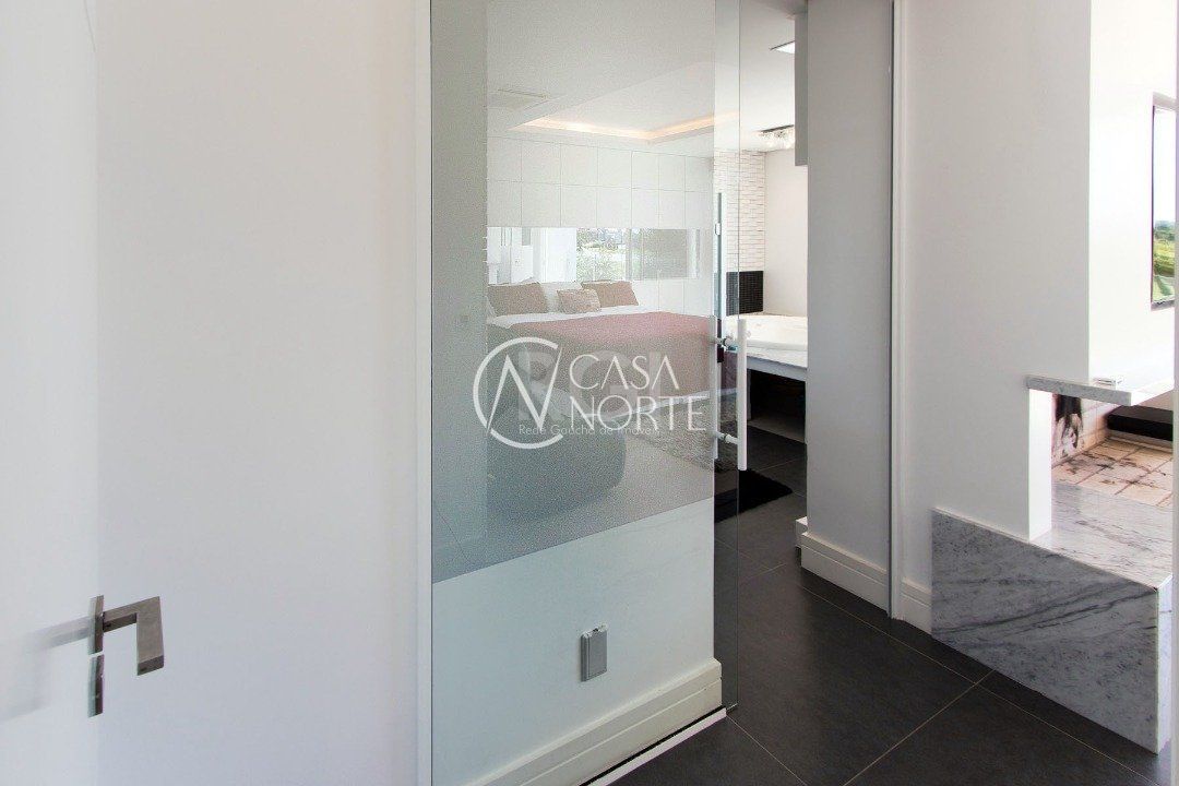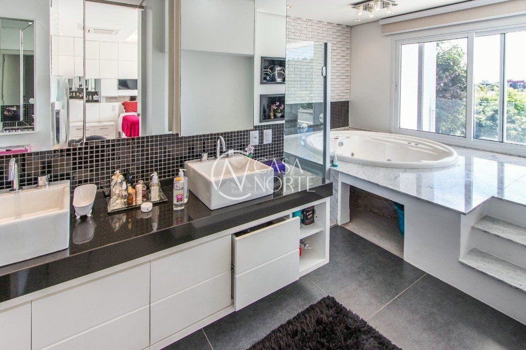 A suíte master, com lareira, closet , banheira de hidromassagem e sacada.