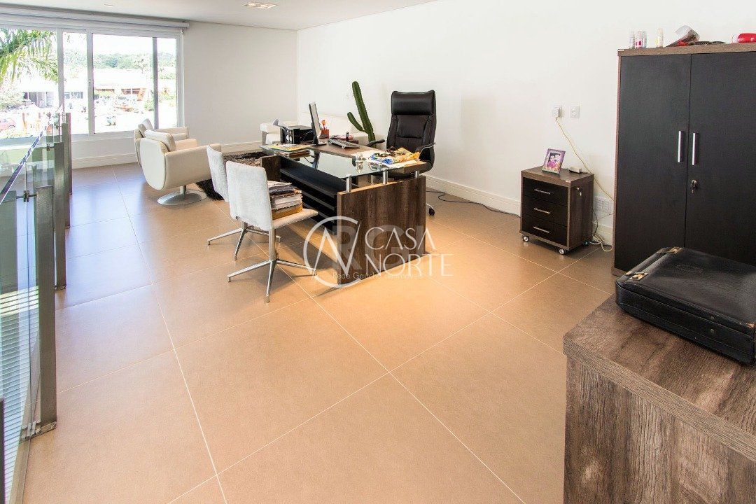 Lavabo, cozinha, gabinete e enorme garagem.