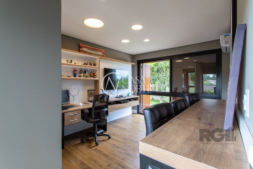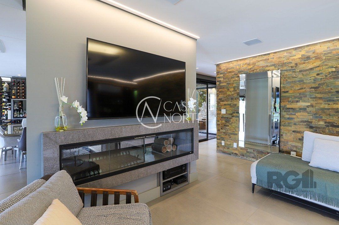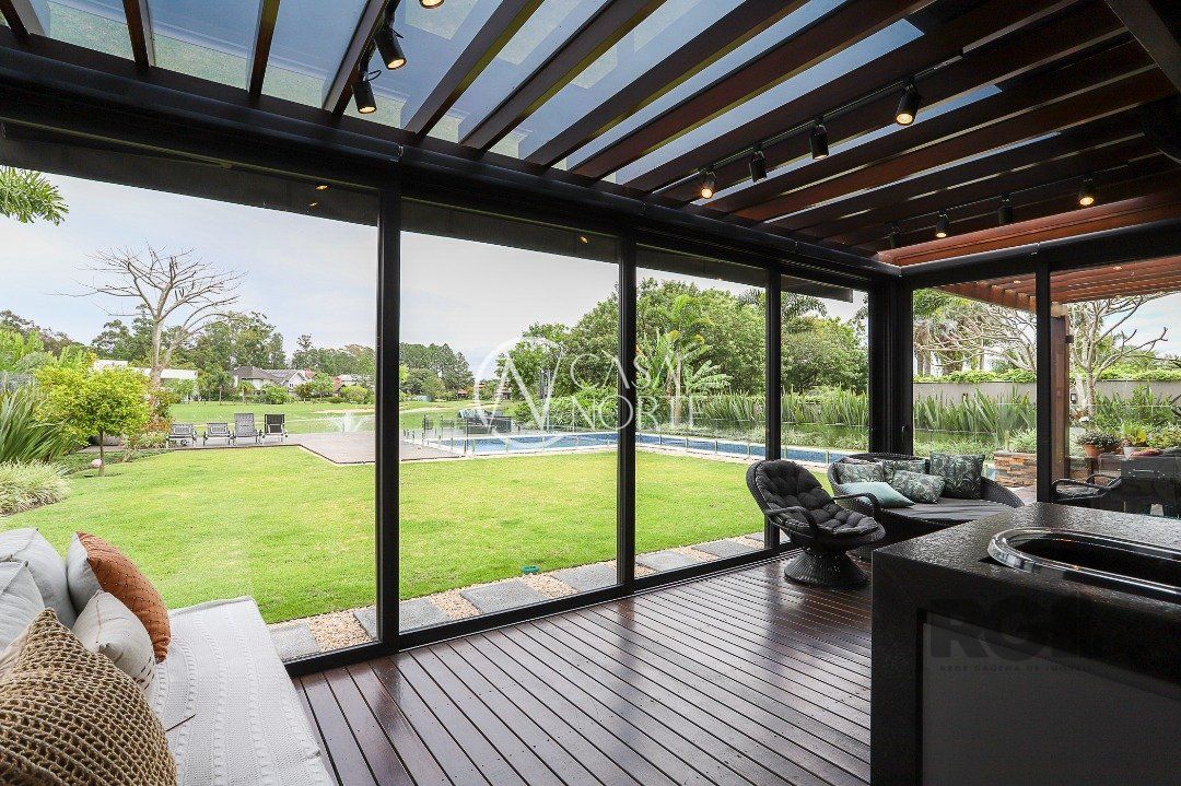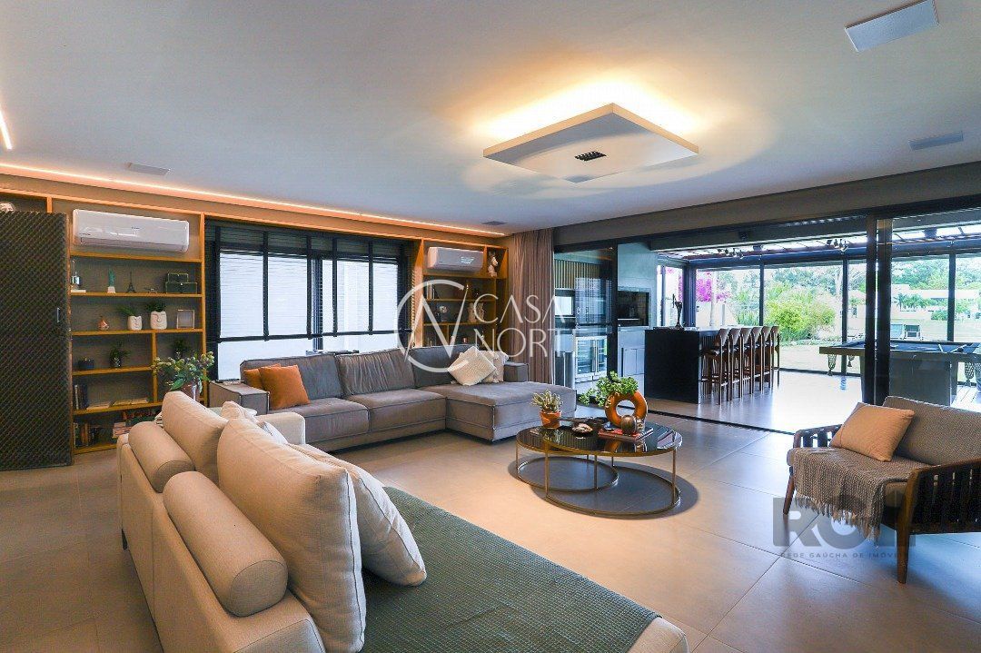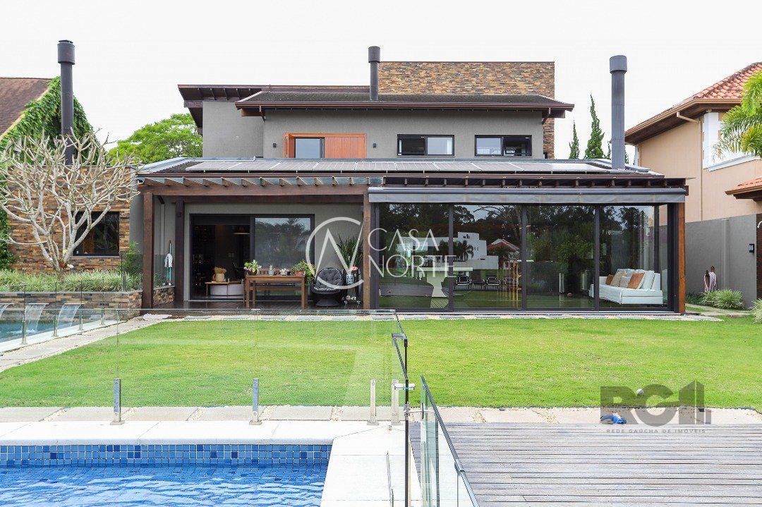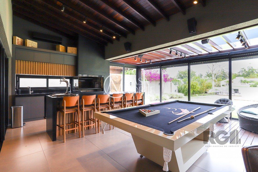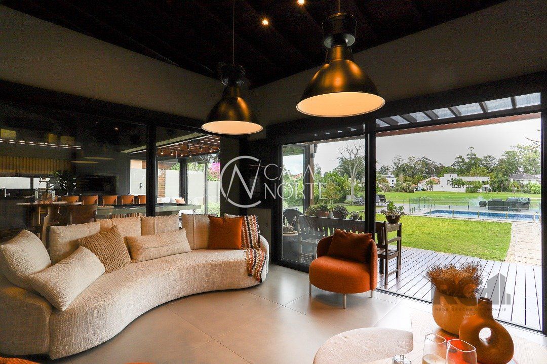 Destaques do imóvel: Adega, Água Quente, Área de Serviço, Banheiro Auxiliar, Churrasqueira, Copa Cozinha, Cozinha Montada, Deck, Dependência de Empregada, Despensa, Escritório, Home Theater, Jardim, Lareira, Lavabo, Living Hall, Mobiliado, Piscina, Quintal, Sacada, Sala de Estar, Sala de Jantar, Salão de Festas, Climatização Split, Suíte Master, WC de Serviço.