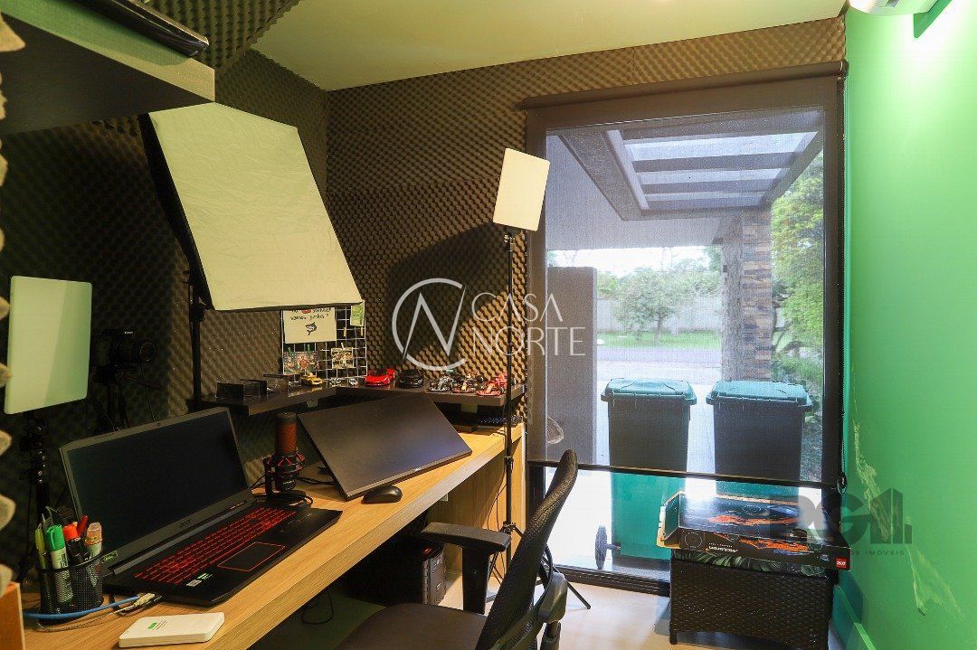 No pavimento térreo, o living espaçoso integra duas salas bem definidas, espaço gourmet completo, lareira acolhedora, lavabo, lavanderia, dependência de empregada, adega climatizada e um estúdio projetado especialmente para gravações e transmissões ao vivo — ideal para criadores de conteúdo.