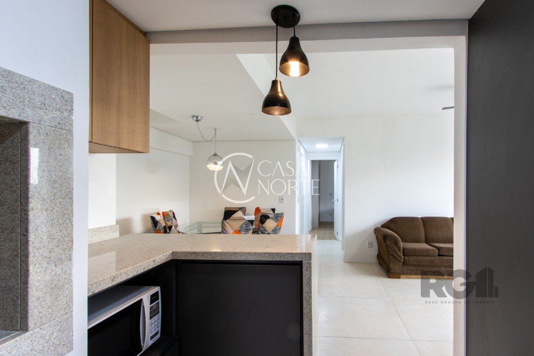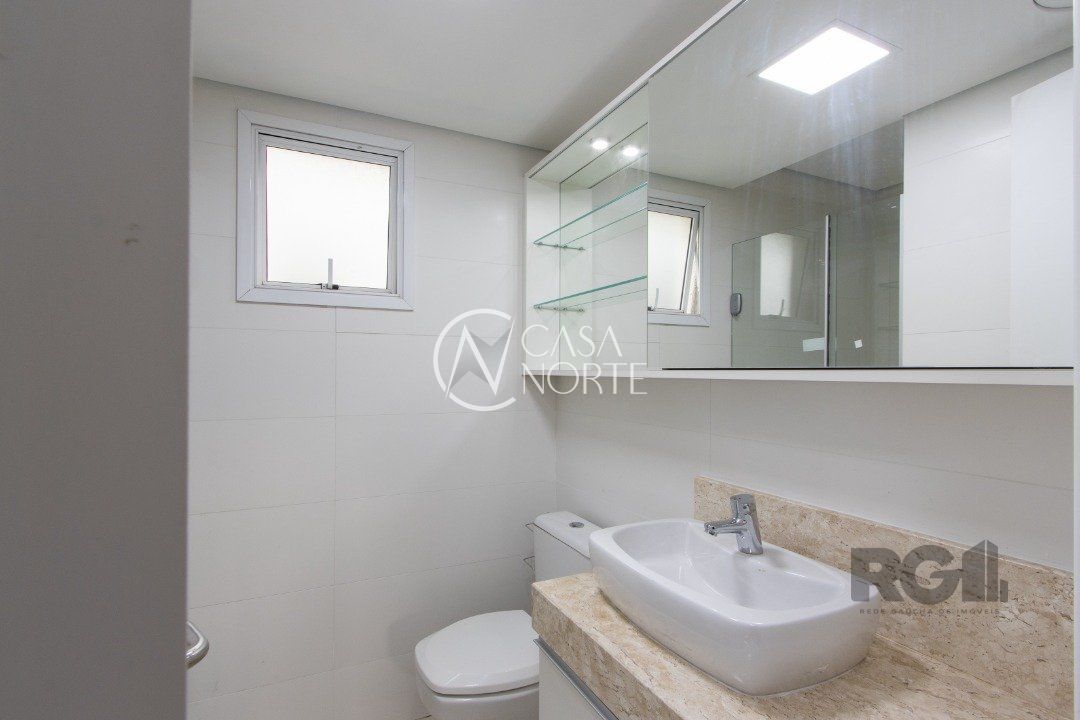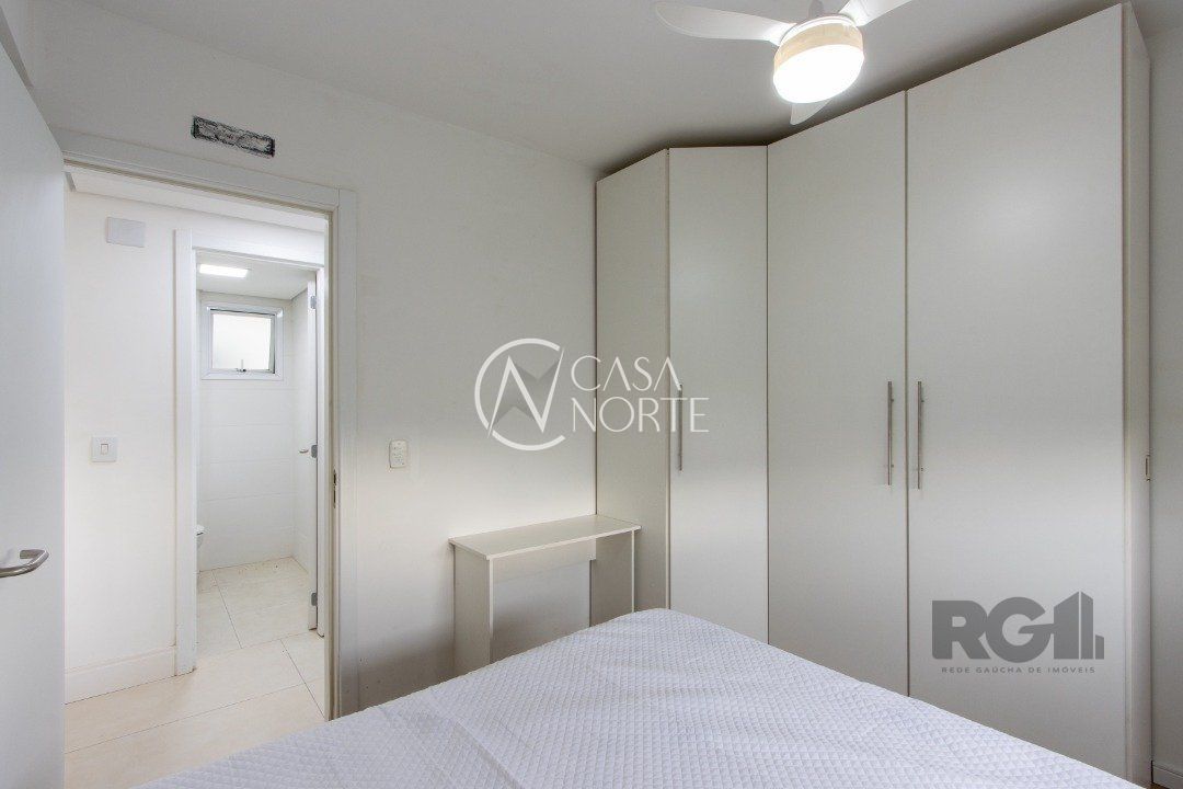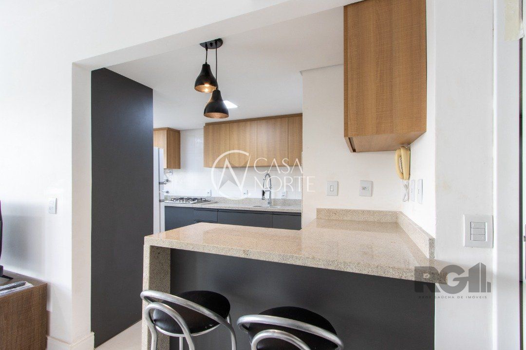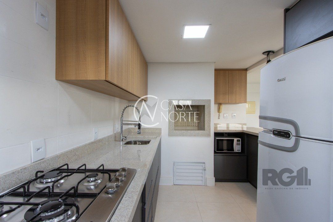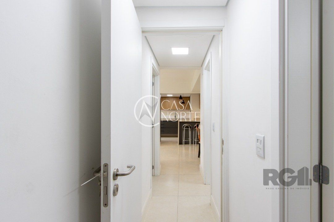 Apartamentos de 2D amplos, com 71m² privativos, com suíte e walking closet, banheiros com balcão em mármore travertino e ventilação direta, living e corredor com porcelanato, água quente em banheiros e cozinha. Balcão da cozinha em estilo americano em granito e churrasqueira também em granito. O living amplo com 2 ambientes distintos e varanda com janela estendia. Opção de 1 ou 2 vagas cobertas de garagem. Salão de festas semi-mobiliado, espaço garden e outras opções de infraestrutura que poderão ser desenvolvidas em assembleia de condomínio. Acessibilidade para cadeirantes na entrada do condomínio e elevador. Finais 1 e 2 com vista para o Guaíba a partir do 4º andar.