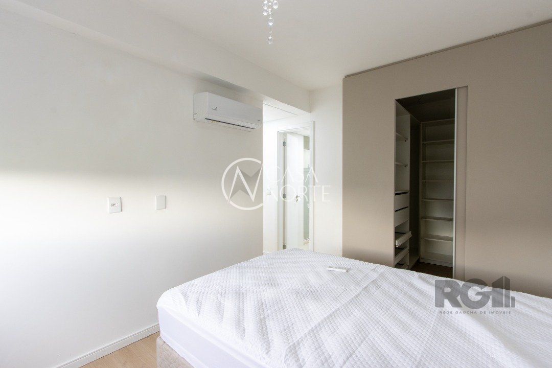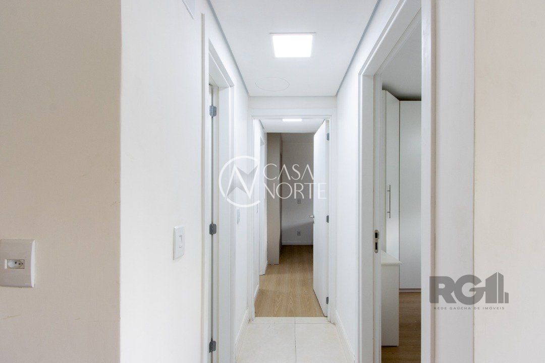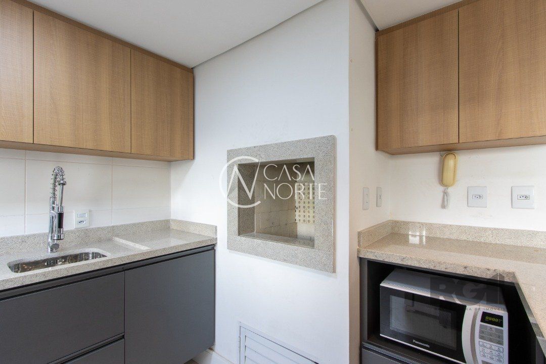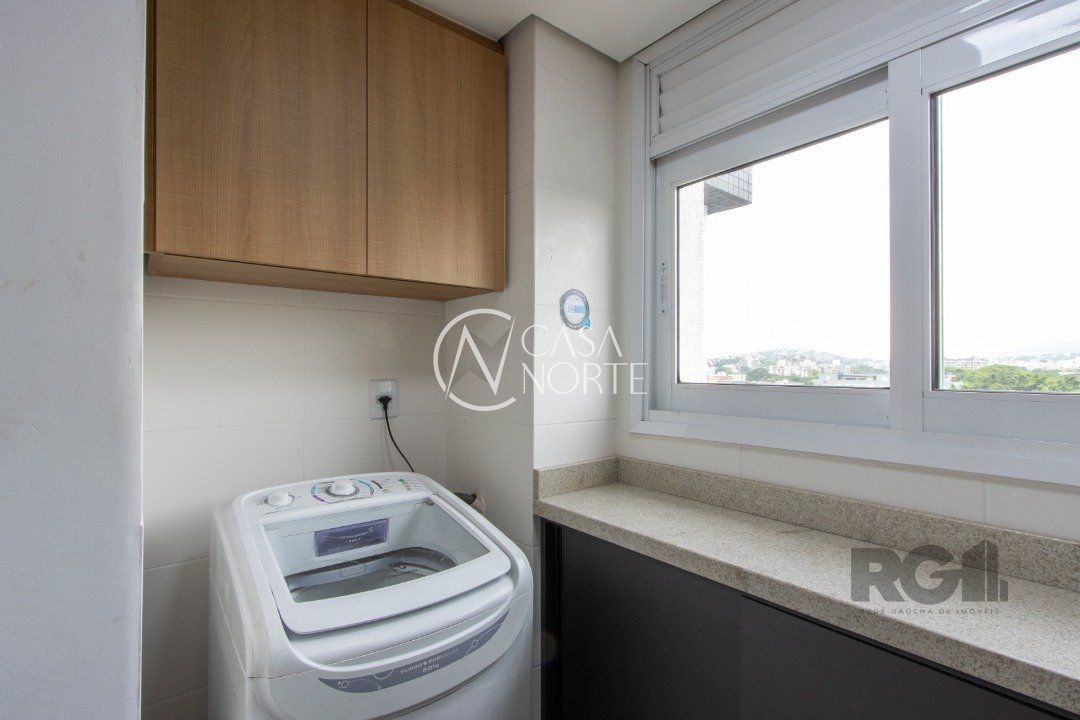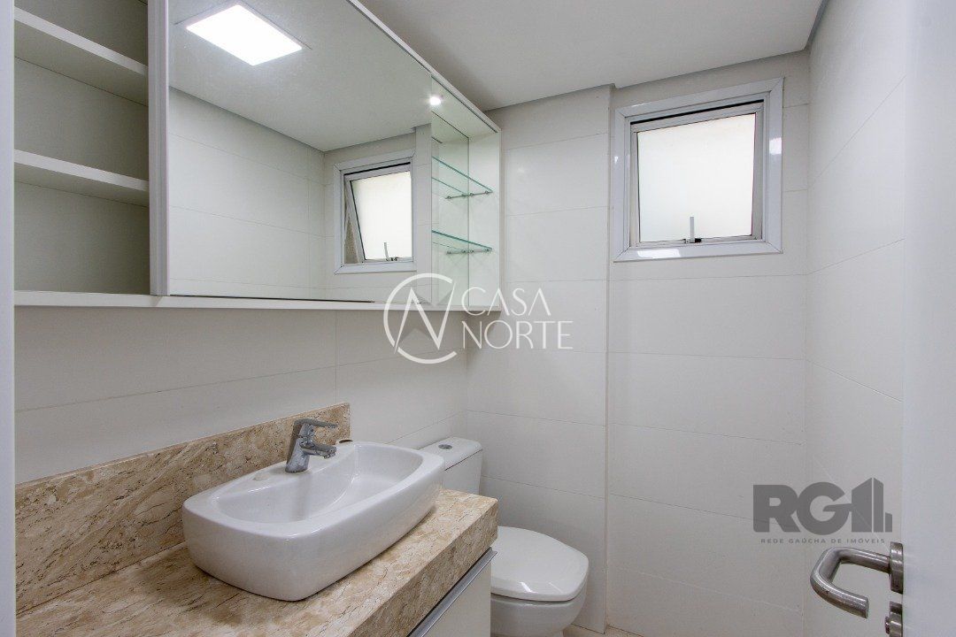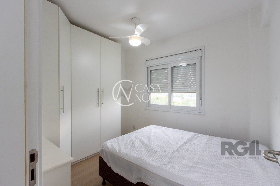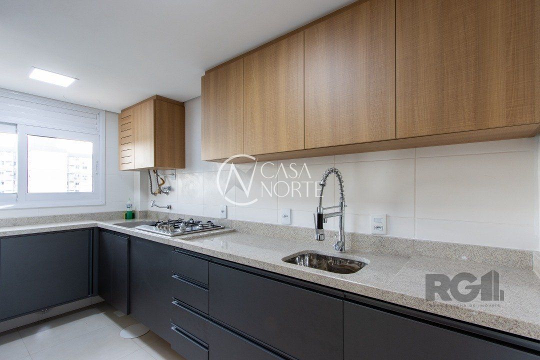 Apartamentos de 2D amplos, com 71m² privativos, com suíte e walking closet, banheiros com balcão em mármore travertino e ventilação direta, living e corredor com porcelanato, água quente em banheiros e cozinha. Balcão da cozinha em estilo americano em granito e churrasqueira também em granito. O living amplo com 2 ambientes distintos e varanda com janela estendia. Opção de 1 ou 2 vagas cobertas de garagem. Salão de festas semi-mobiliado, espaço garden e outras opções de infraestrutura que poderão ser desenvolvidas em assembleia de condomínio. Acessibilidade para cadeirantes na entrada do condomínio e elevador. Finais 1 e 2 com vista para o Guaíba a partir do 4º andar.
