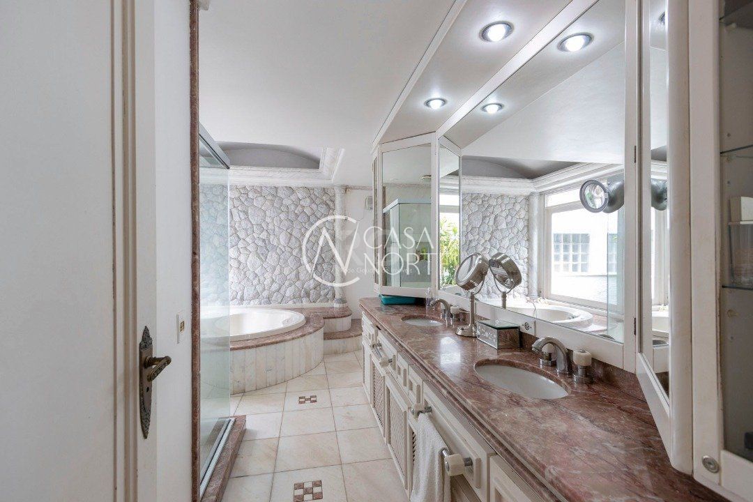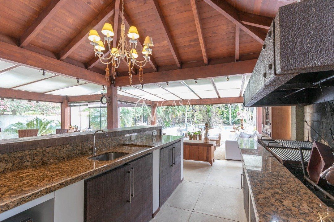 excelente residência construída em terreno de 2.500m² hall de entrada, porta de vidro dividindo ambiente ,Living com 80 m² com ,03 ambientes , lareira sacada integrada estilo garden , sala de jantar para 10 lugares , cozinha copa mobiliada, com churrasqueira americana e mesa 04 lugares, área intima com.suite master , banheira com hidromassagem, closet, masculino e feminino, garagem coberta para 04 carros,dependência para 02 empregados, ampla lavanderia, amplo pátio com piscina aquecida, quadra poliesportiva, vertente natural e depósito em construção independente requintado salão de festas com Estar social com lareira , adega com 20m² , lavabo