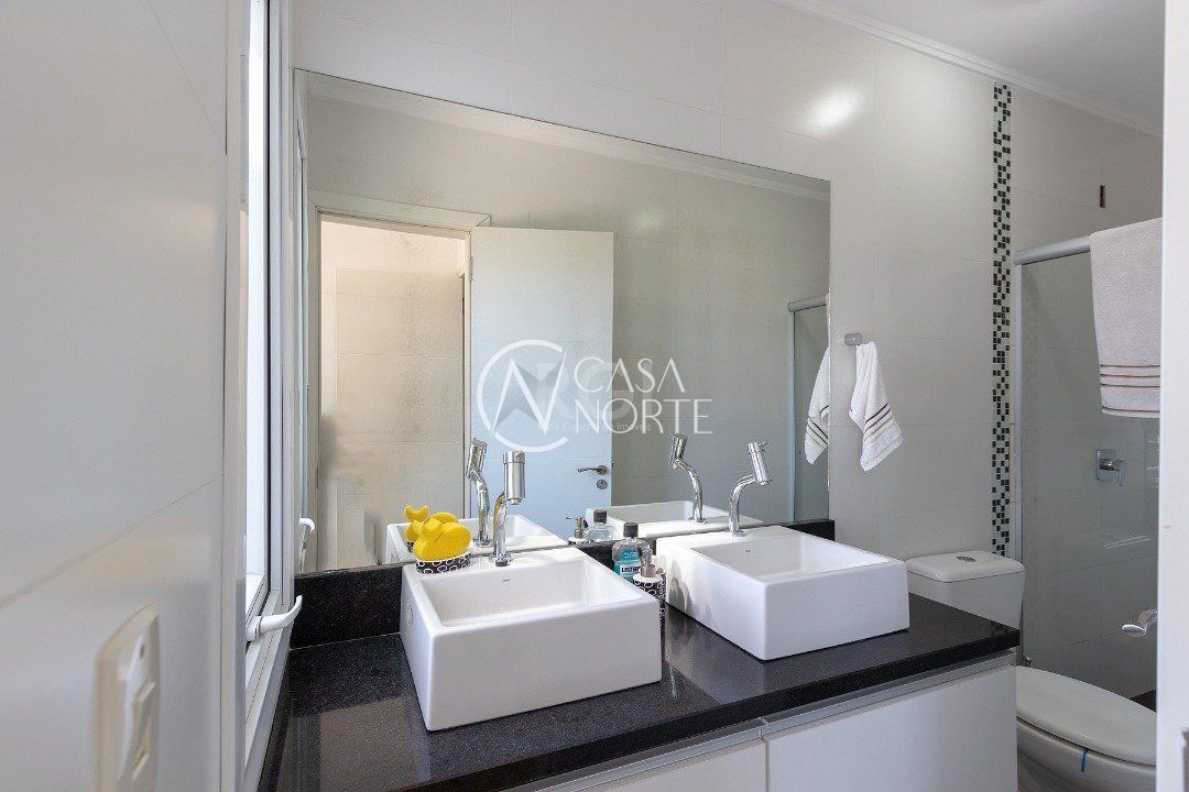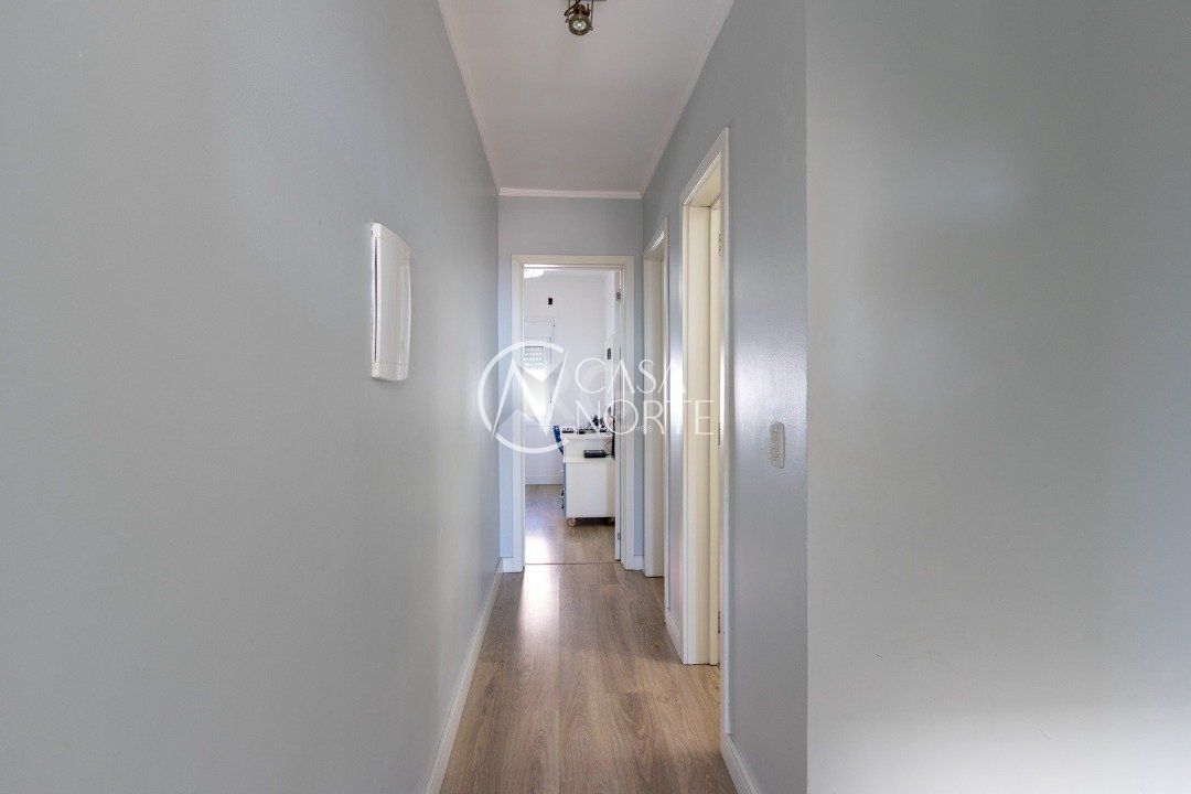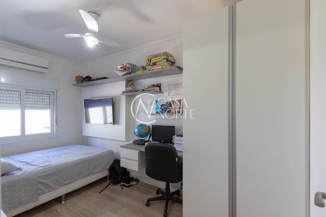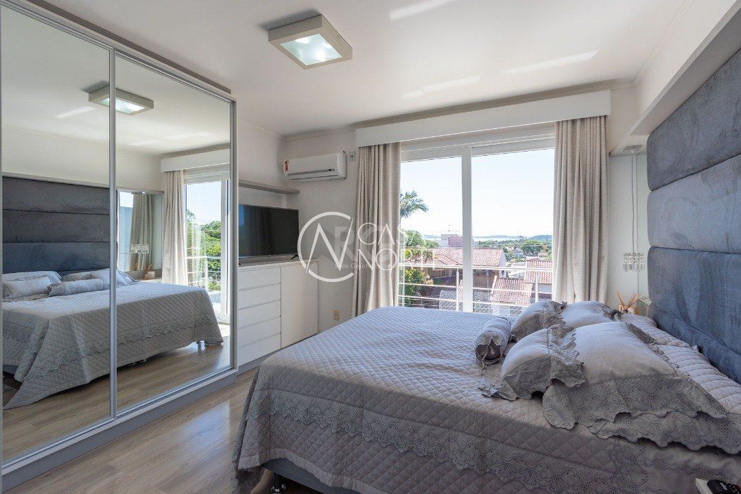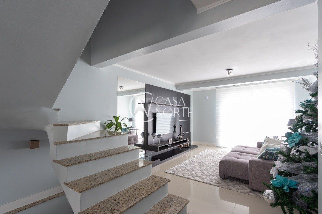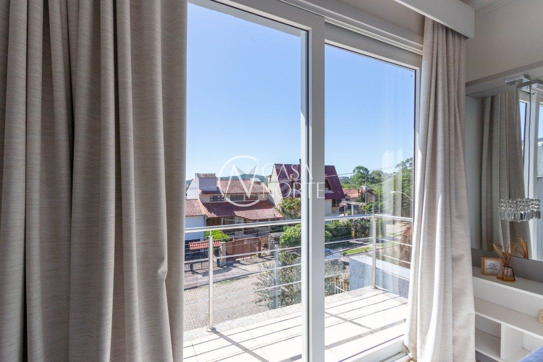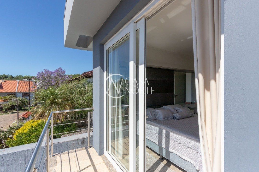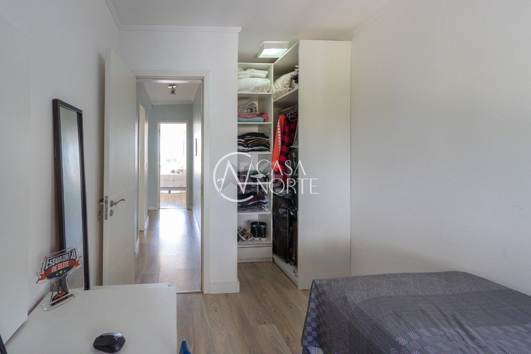 No segundo andar tem os três dormitórios, sendo um suíte com sacada, e o banheiro social.