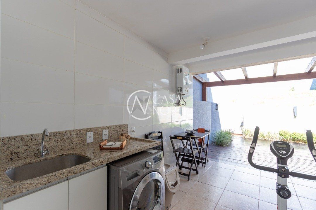 Living amplo em dois ambientes, com sacada e lavabo. Cozinha panejada, espaço gourmet e churrasqueira, lavanderia, deck com pergolado e pátio privativo.